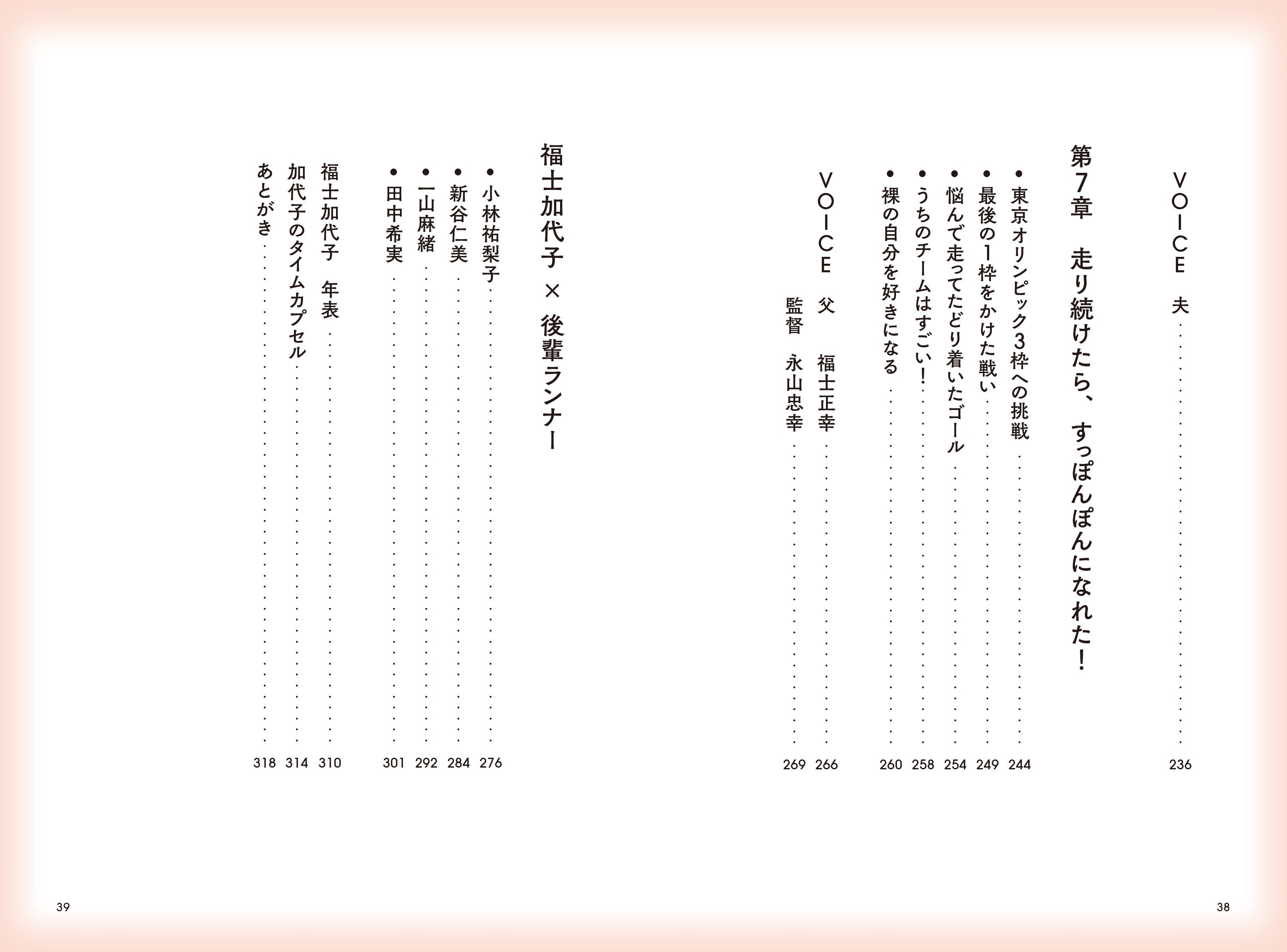 その陸上人生を支えてきた両親や親友、恩師、監督にも徹底取材し、トレードマークの笑顔に隠された福士加代子