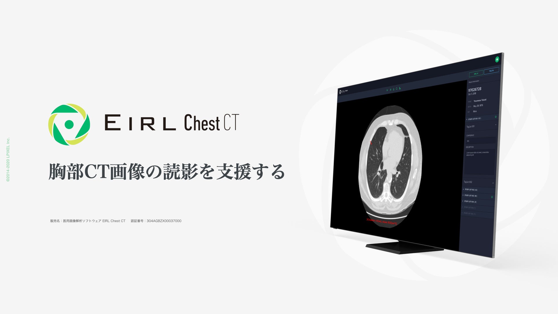 2022年4月4日(月)、エルピクセル株式会社(本社:東京都千代田区、代表取締役:鎌田富久、島原佑基、以下「エルピクセル 」)は、胸部 CT 画像の肺野領域において、観察対象の領域(関心領域)を抽出し、その体積と最大径を測定するEIRL Chest CTについて、「医薬品、医療機器等の品質、有効性及び安全性の確保等に関する法律(医薬品医療機器等法)」に基づき、指定管理医療機器の製造販売認証(認証番号:304AGBZX00037000)を取得し、販売を開始いたしました。
