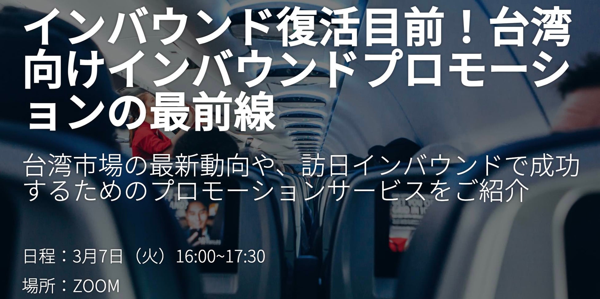 ・名 称:「インバウンド復活目前!台湾向けインバウンドプロモーションの最前線」台湾市場の最新動向や、訪日インバウンドで成功するためのプロモーションサービスをご紹介