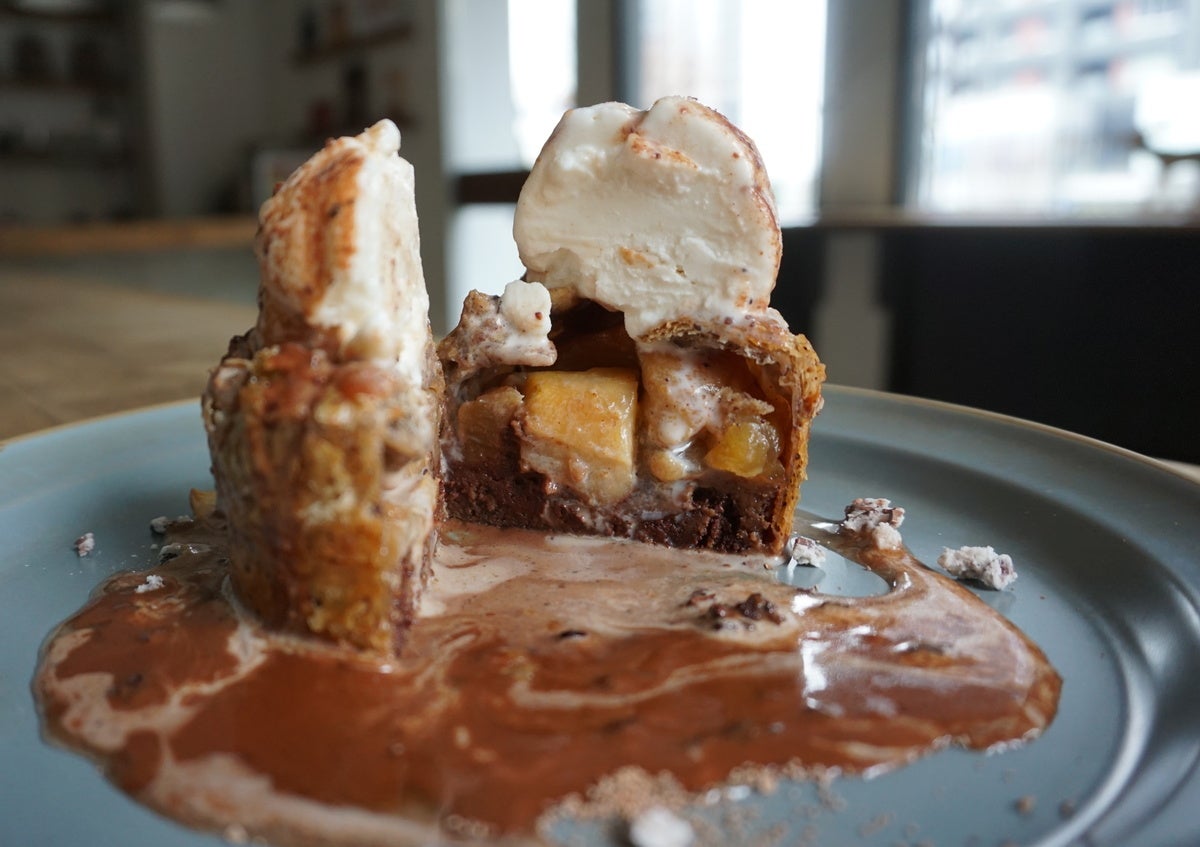 - ゴロッとリンゴに濃厚で複雑な香りのチョコレート。1日15食限定、イートイン・テイクアウト可能な期間限定のアップルパイ
