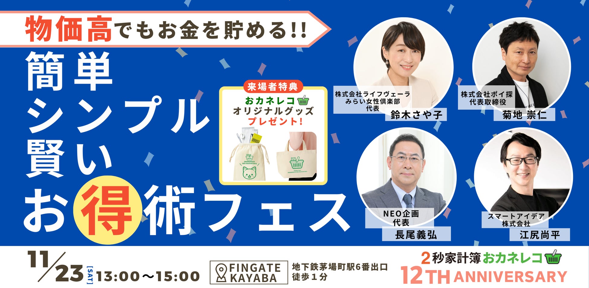 20代〜50代の主婦・ポイ活初心者向け!物価高でもお金を貯める!『簡単・シンプル・賢いお得術フェス』11月23日(土)開催決定