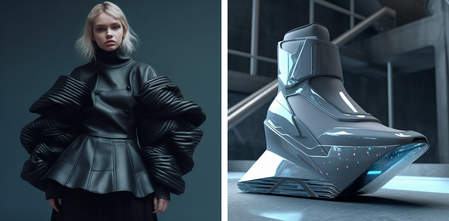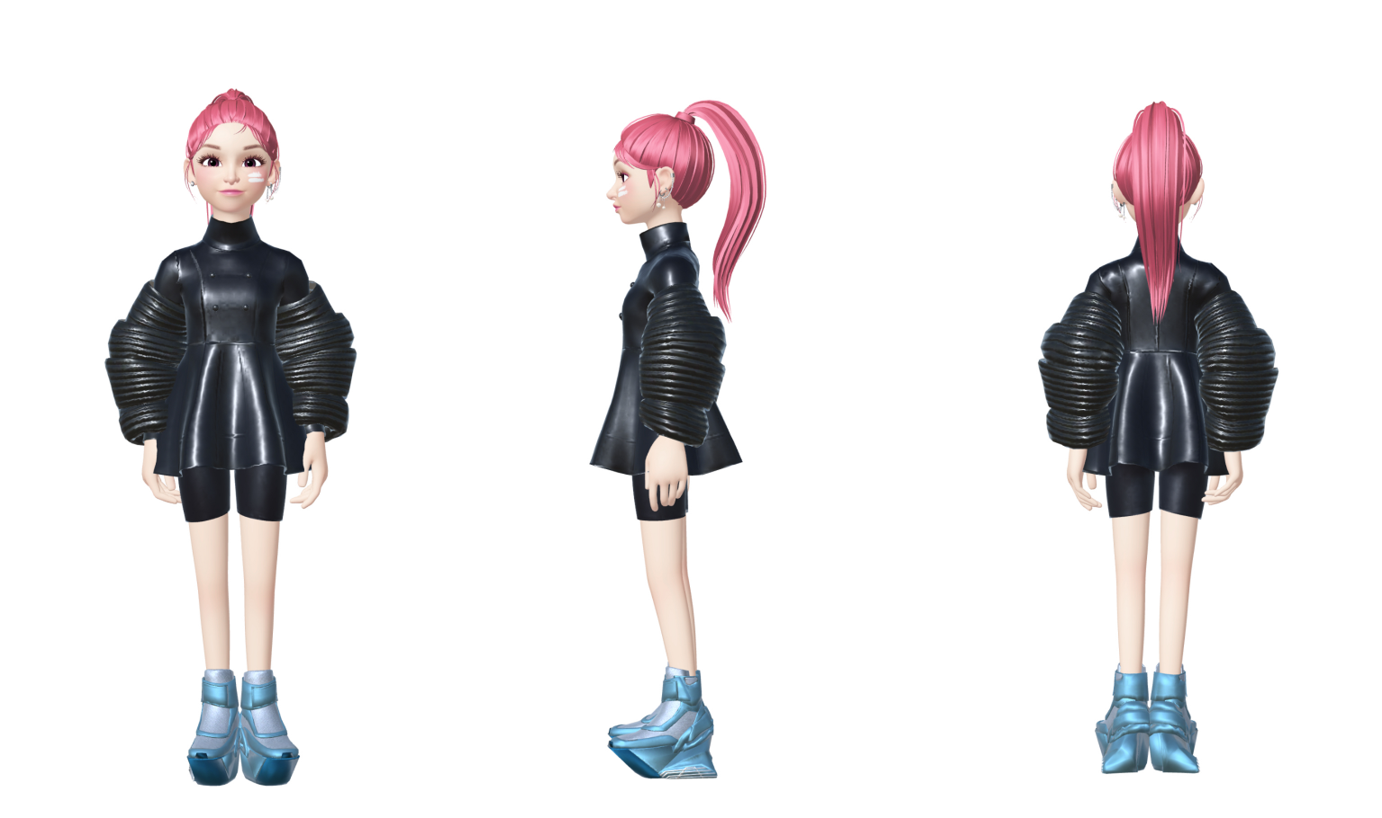 大きく誇張された袖と光沢のあるマテリアルで、3Dならではの「未来的で大胆」な可愛らしさとかっこよさを表現しました。AIと人が交差して誕生した事が感じられやすいデザインです