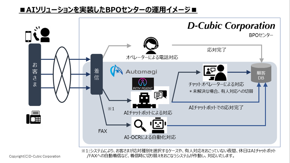 キューアンドエーグループのダイレクトマーケティングBPO事業を展開するディー・キュービック株式会社(代表取締役社長:伊柳義之、本社:東京都渋谷区、以下「ディー・キュービック」)とAutomagi株式会社(代表取締役社長:櫻井将彦、本社:東京都新宿区、以下「Automagi」(オートマギ))は、BPOセンターにおけるAIソリューションを強化・拡大することを目的に協業いたします。その第一弾としてディー・キュービックではAutomagiが独自に開発したAIソリューション「AMY」(エイミー)(*1)を活用したBPOセンターソリューションの提供を2019年6月21日より開始いたします。