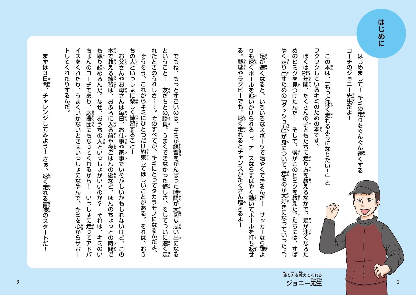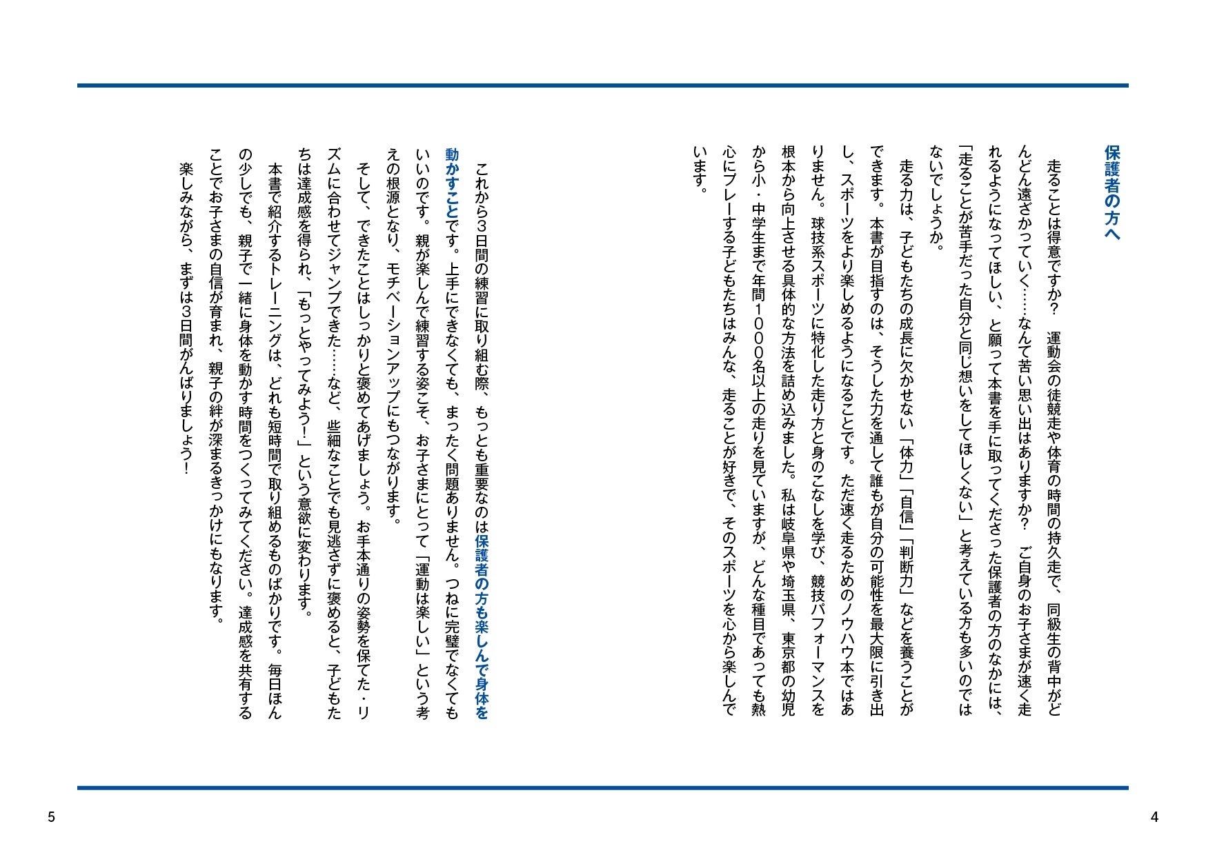 本書の目的は、ただ足が速くなることだけではなく、子どもたちに身体を動かすことの楽しさを知ってもらうこと、そしてさまざまなスポーツへの興味を生み出すことです。そして、彼らにとって親が楽しく練習に励む姿は、何よりも「運動は楽しい」という考えの根源となり、モチベーションアップにもつながります。