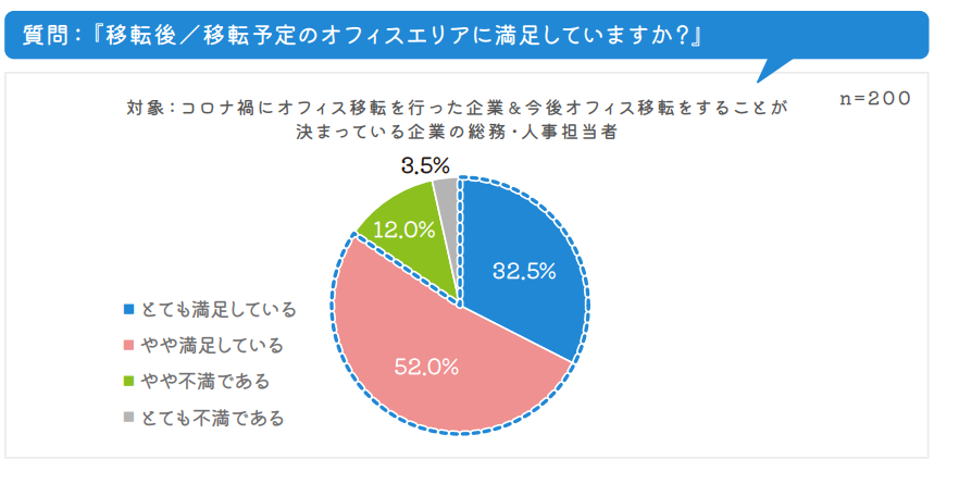 移転先のエリアに対して、「満足している」担当者は8割以上存在。