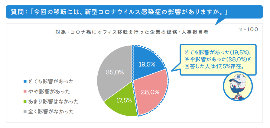 今回の移転に“コロナ禍の影響があった”と回答した担当者は約半数存在。