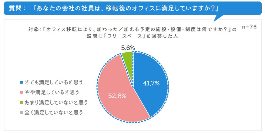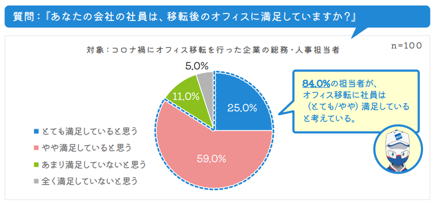 コロナ禍のオフィス移転については、担当者の8割以上が 「社員は満足していると思う」と回答。