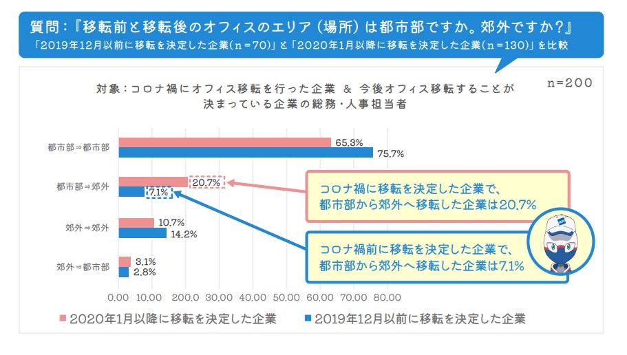 また、移転先のエリアについて、移転することを決定した時期(コロナ禍前とコロナ禍)で分けて結果をみると、