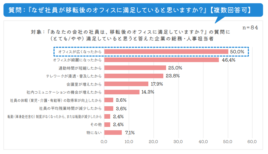 「満足している」理由の第1位は、「オフィスが広くなったから」