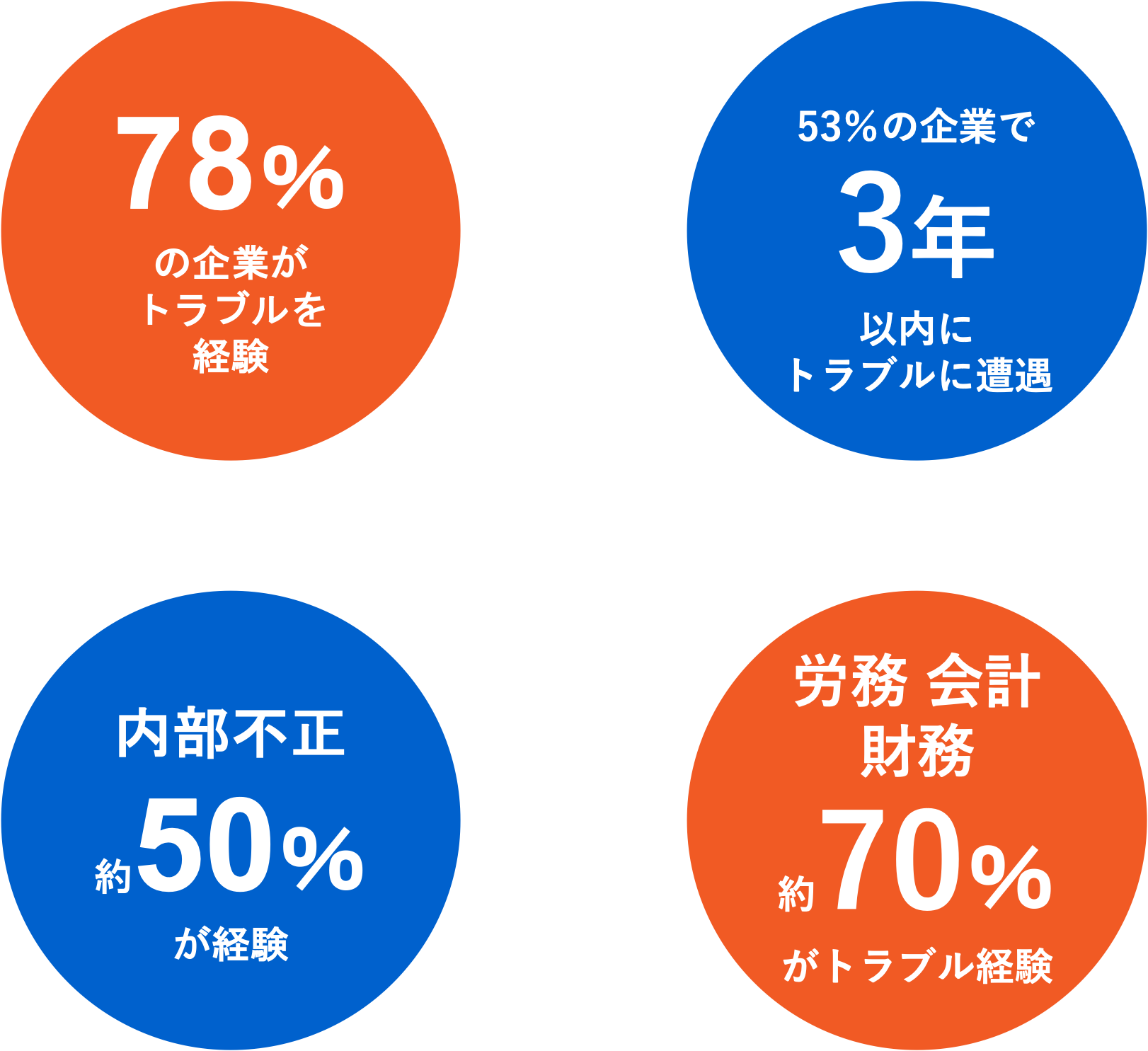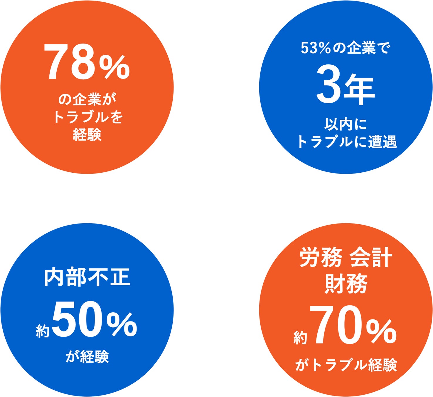 内部不正、その他分野の詳細データや回答者の声は、調査レポートにまとめています。
