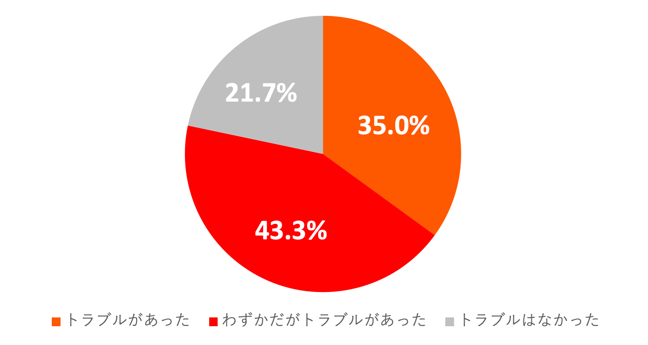 - 53%の企業が、進出3年以内に何らかのトラブルを経験