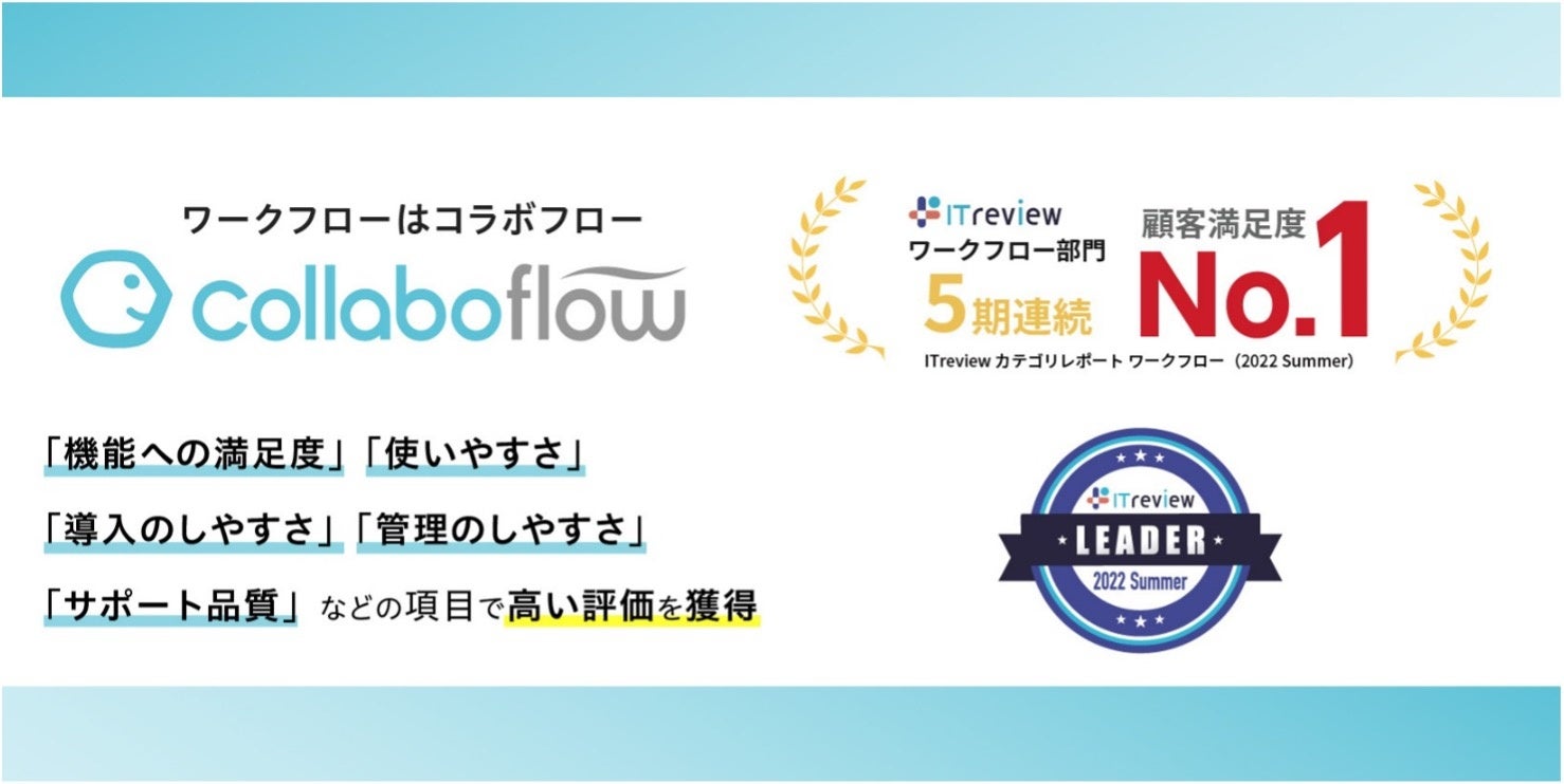 コラボフローが「ITreviewカテゴリーレポート 2022 Summer ワークフロー部門」で5期連続で顧客満足度No.1に選出