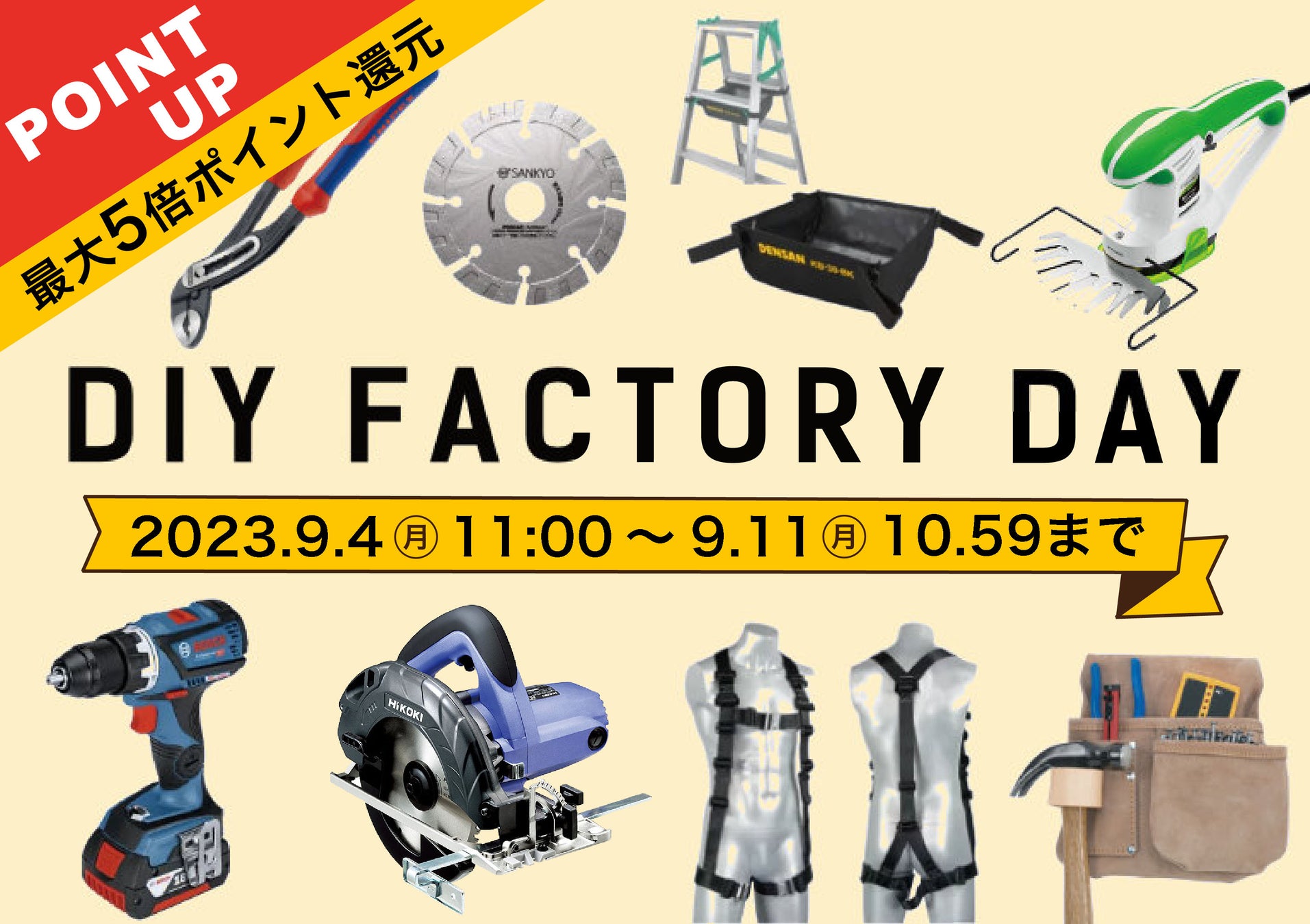 「DIY FACTORY DAY」にて対象商品が最大5倍ポイント還元