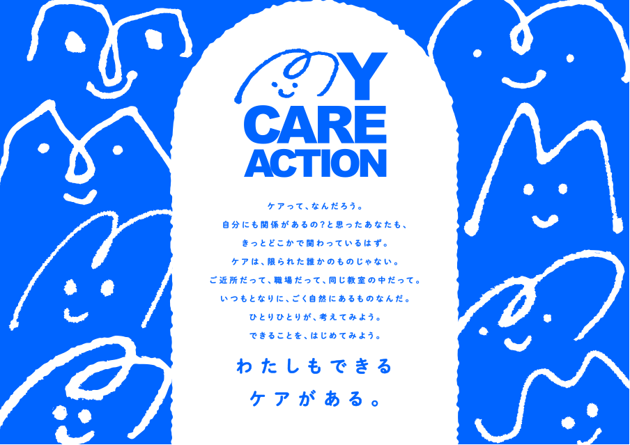超高齢社会と家族構造の変化により、「ケア」は特定の人だけの課題ではなく、誰もが「ケアする側/ケアされる側」になる可能性があり、全世代が向き合うべきテーマとなっています。『MY CARE ACTION』は、社会課題として注目されるヤングケアラー・若者ケアラーといった、ケアと仕事の両立に葛藤している方々への社会参画機会の創出や、職場で働く人々、若年層に対しての「ケア」に対する意識向上の機会をつくっていくことで、社会全体として支える仕組みを整え、誰もが「わたしもできるケアがある」と思える社会を目指しています。