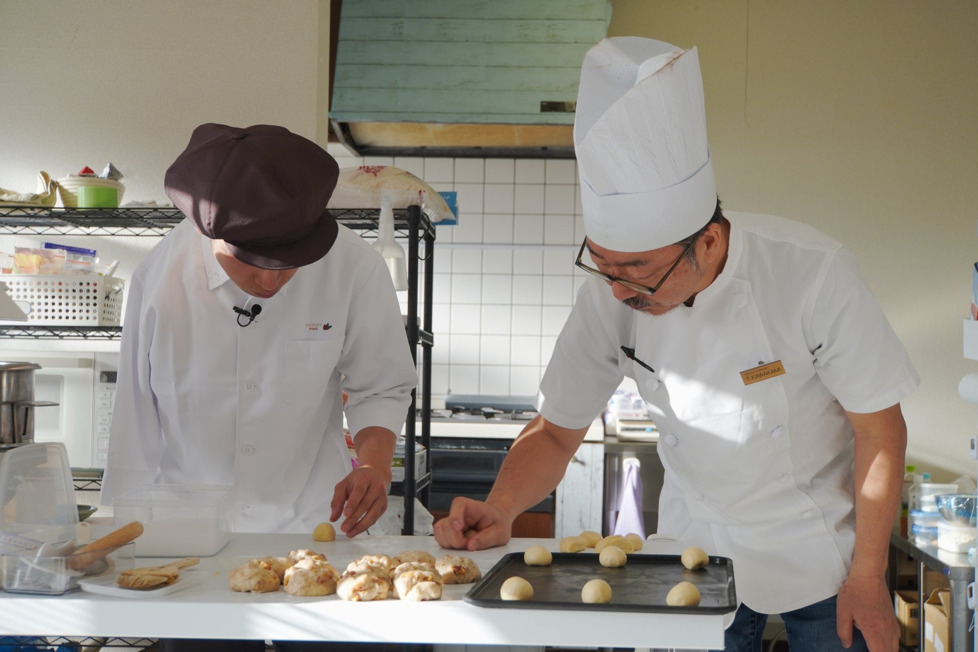 リエゾンプロジェクトでは、そうした松丸様の経験を尊重しつつ、弊社のパン作りの技術を習得いただく中で、片腕でも安全かつ効率的に製パンできる方法を一緒に模索する「伴走型支援」を行いました。