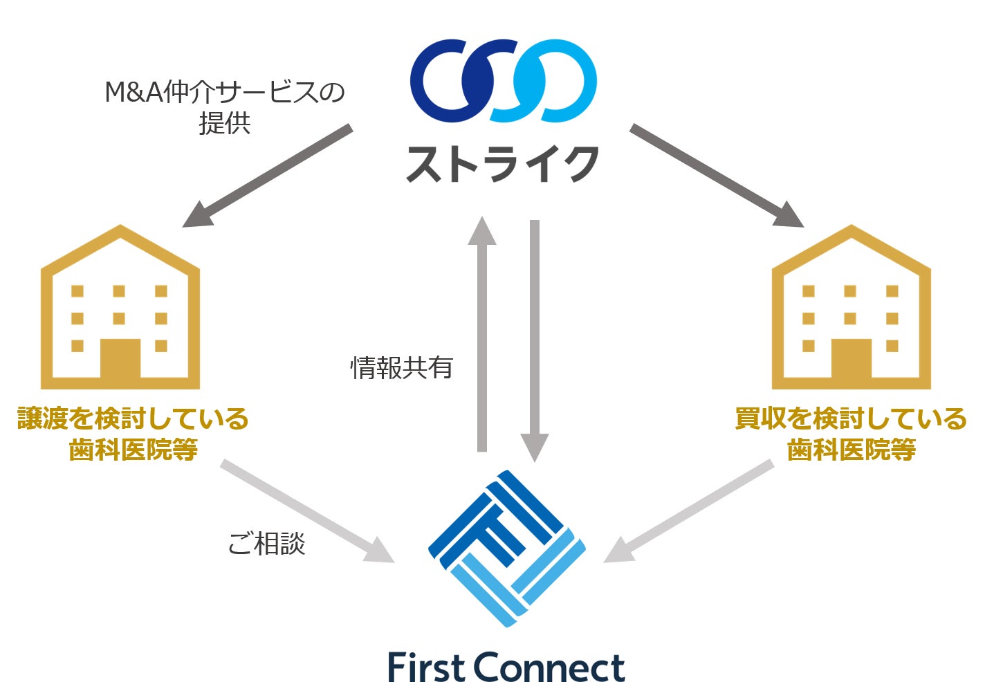 当社は創業事業である歯科特化型の人材紹介サービスをはじめ、採用支援や集患など、歯科医院へ向けて包括的にサービスを展開しています。数多くの顧客接点を持つ中で、事業承継や経営難に関する相談を受けるケースもあり、今回のストライク社との業務提携により、これまで成し得なかった課題解決が可能になると考えております。