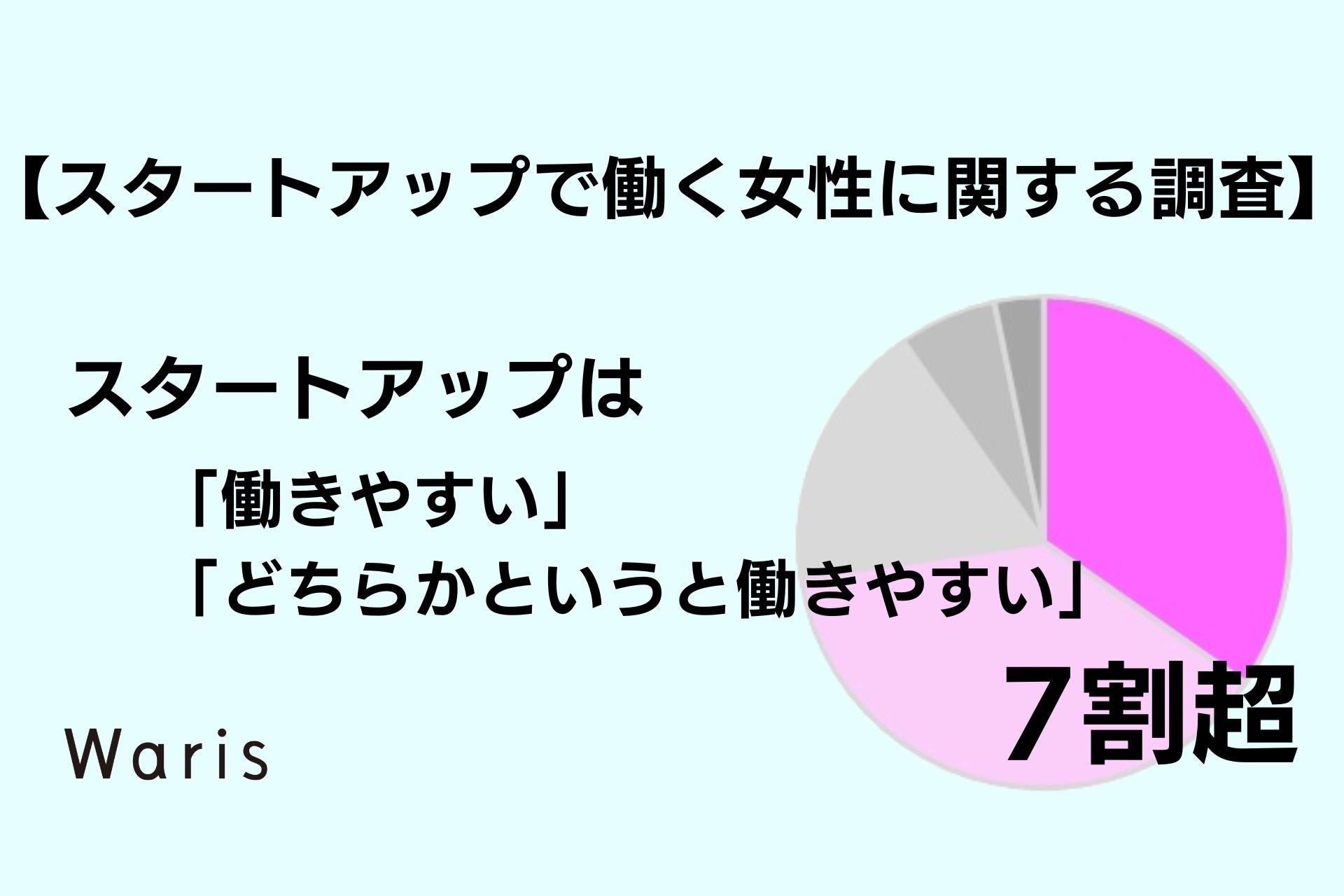 女性の多様な働き方への支援を通じて、すべての人の自分らしい人生を応援する人材サービス企業株式会社Waris(所在地:東京都千代田区、共同代表:米倉史夏、田中美和、河京子、以下Waris)は、スタートアップ企業で働いてる(働いていた)女性を対象に実施した「スタートアップで働く女性に関する調査」の結果を本日発表いたします。
