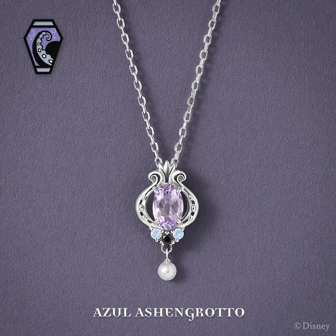 「アズール・アーシェングロット」のアイコンに描かれているタコ脚をイメージし、透かしのある立体的なフォルムで繊細に表現しました。泡や海藻のモチーフもさりげなく取り入れています。メインストーンにピンクアメジストを使用し、下に下がった部分はタンスイパールで泡を表現しました。