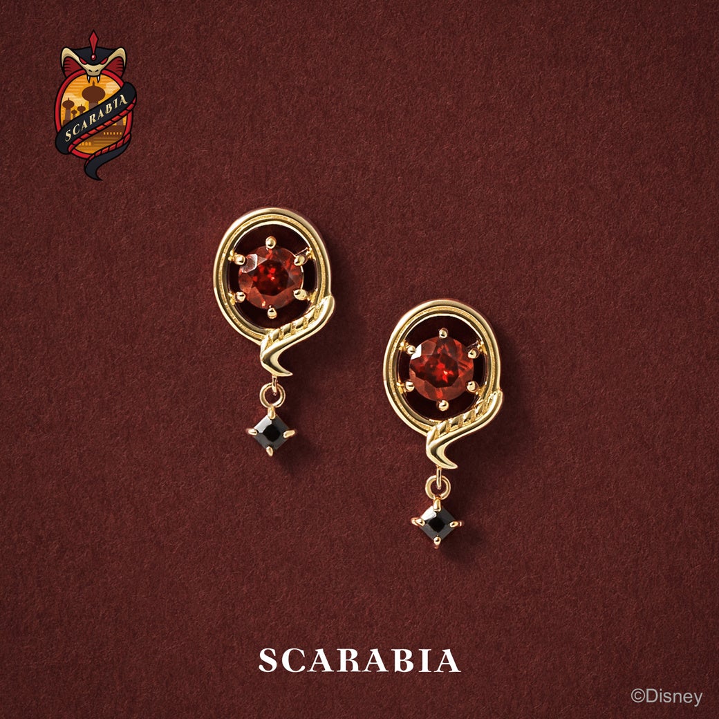 ガーネットとブラックのキュービックジルコニアで、「スカラビア」寮をイメージしたカラーを表現しました。蛇モチーフもさりげなくデザインとして取り入れ、華やかさをプラスしてくれるアイテムです。