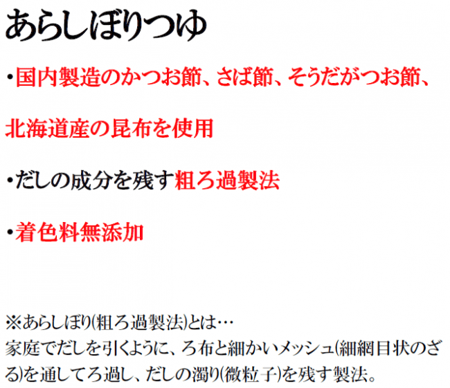 ・だしの成分を残す粗ろ過製法