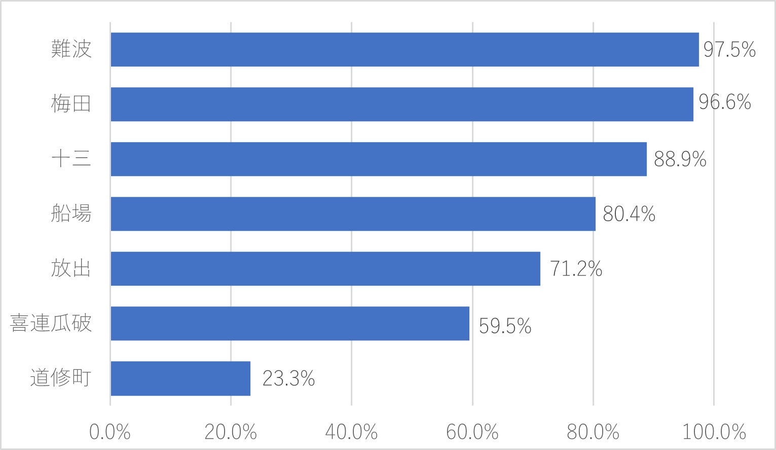 道修町を「どしょうまち」と正しく読めた方は23.3%で、調査開始以来最も低い正答率となりました。