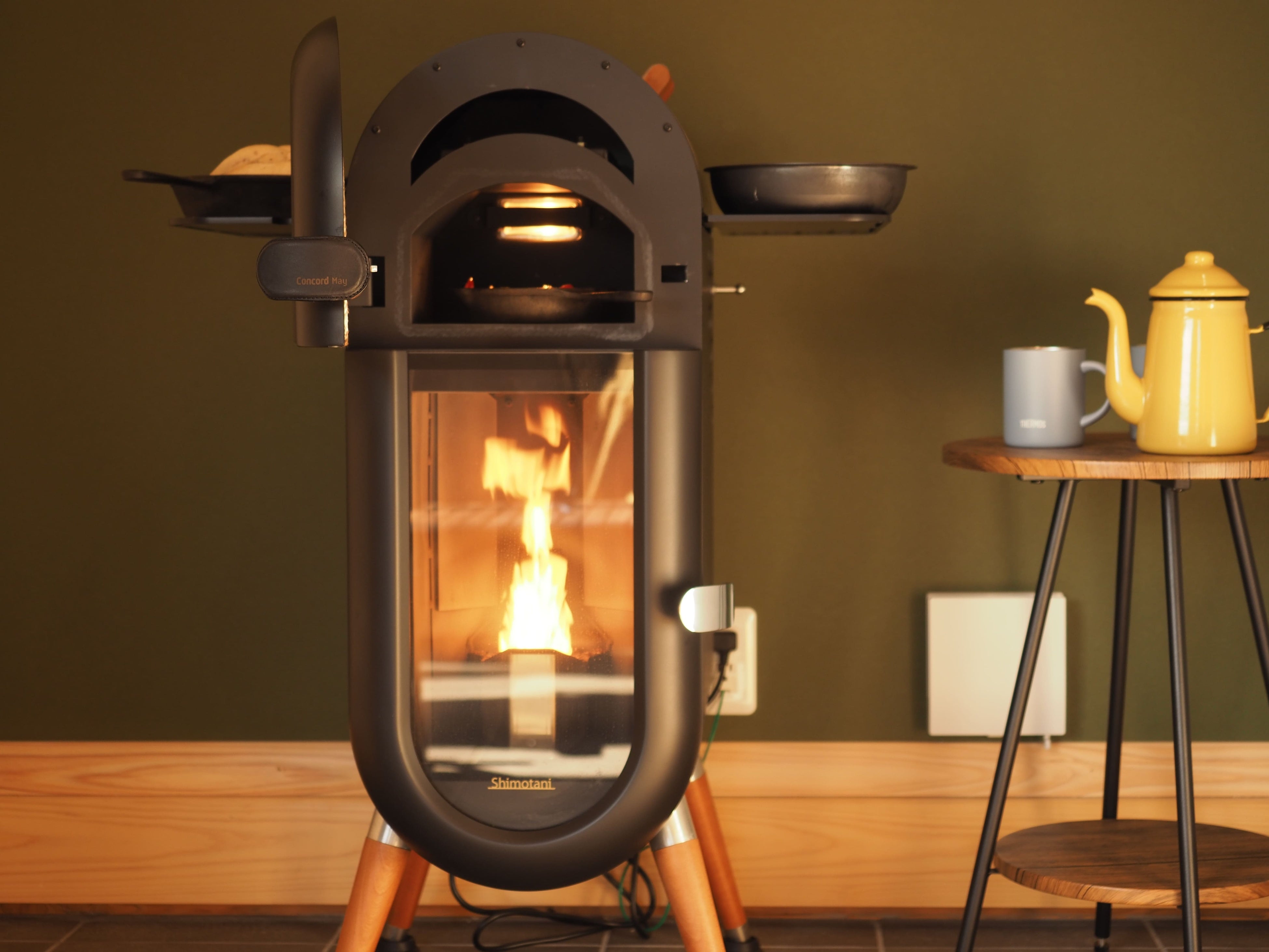 キーを開けてまず迎えるのが「ペレットストーブ」。揺らめく炎が温かなリビングに映えます。ペレットは環境に配慮した国産間伐材を使用。