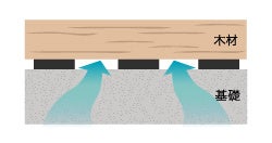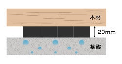 木材と基礎の間を物理的に絶縁する事で湿気が木部に上がることを防ぎ、長期的に木材を長持ちさせます。