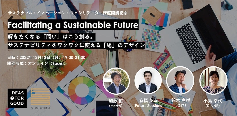 “Publishing a better future(よりよい未来を、みんなに届ける)”をコンセプトにウェブメディア事業を手がけるハーチ株式会社(東京都中央区、代表取締役:加藤佑)と、ソーシャルイノベーションの実現に向けて、創造的な対話の場をつくる株式会社フューチャーセッションズ(代表取締役社長:有福英幸、本社:東京都渋谷区)が、企業や自治体のサステナビリティ・プロジェクト推進を成功に導くためのファシリテーションスキルを身につける個人向けプログラムの提供を開始します。初回の開講は2023年1月25日。