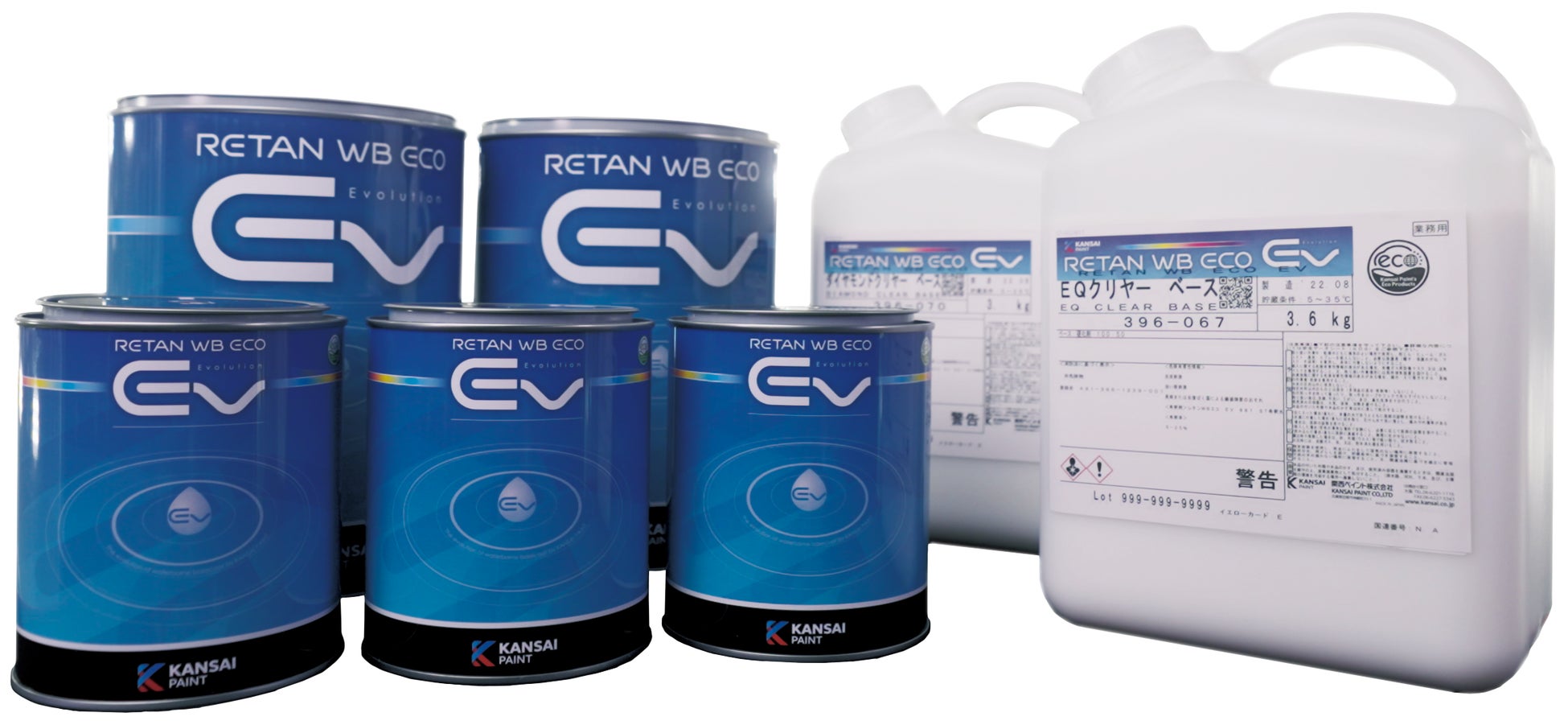 関西ペイントは2018年9月、業界初の『オール水性 有機則フリーシステム』を発売し、その後も改良を進めてまいりました。今回2度目のバージョンアップとなる『EV システム 3.0』は、クリヤーにおいて溶剤塗料並みの作業性・乾燥性を実現したほか、プラサフ・ベースコート・クリヤー・硬化剤及び希釈水等の全てにおいて有機溶剤中毒予防規則(有機則)非該当化*を達成した製品群となります。加えて、業界初となる水性塗料の耐スリ傷性クリヤー、水性プラスチックプライマーをラインアップしたほか、艶消し仕様への対応も可能となり、システムの補修範囲が格段に広がりました。