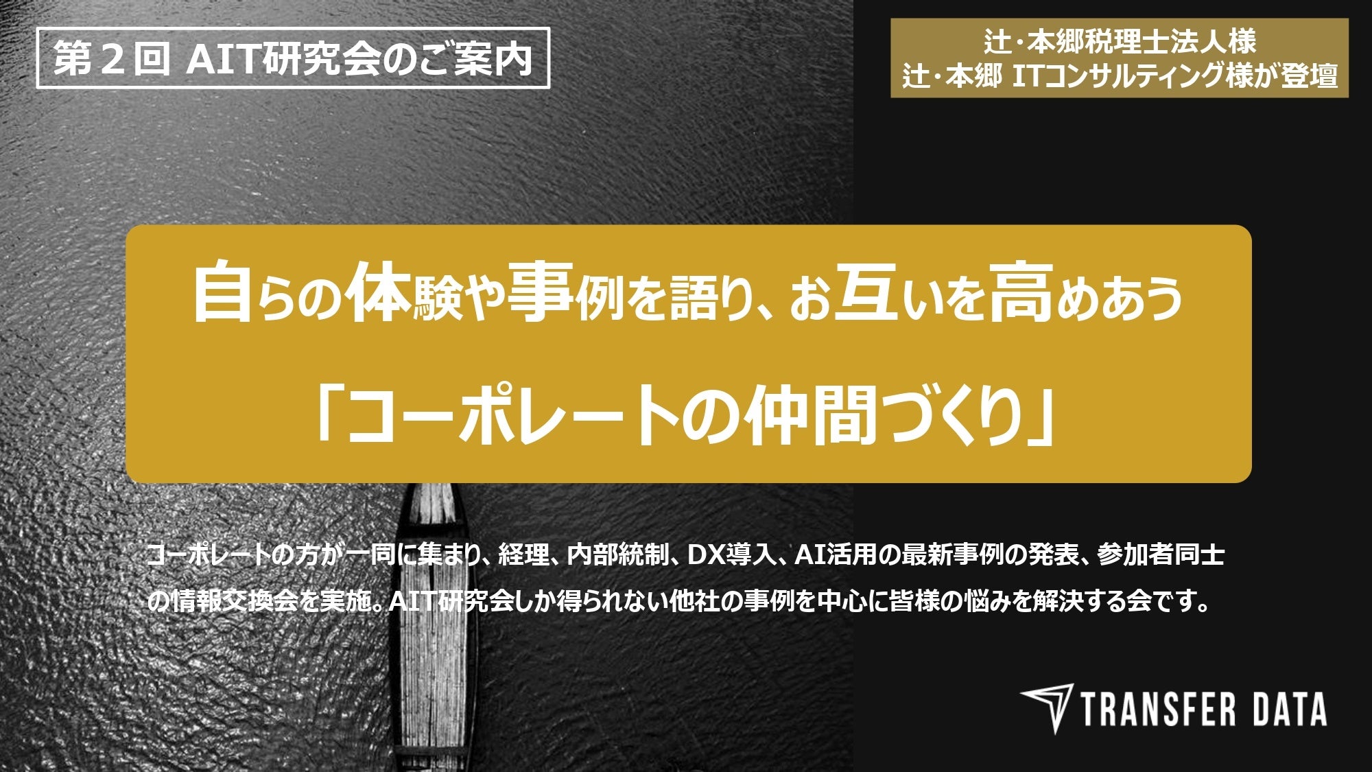 各社のコーポレート部門の成功事例を共有する「AIT研究会」を開催。辻・本郷ITコンサルティング株式会社様にご登壇いただきました。