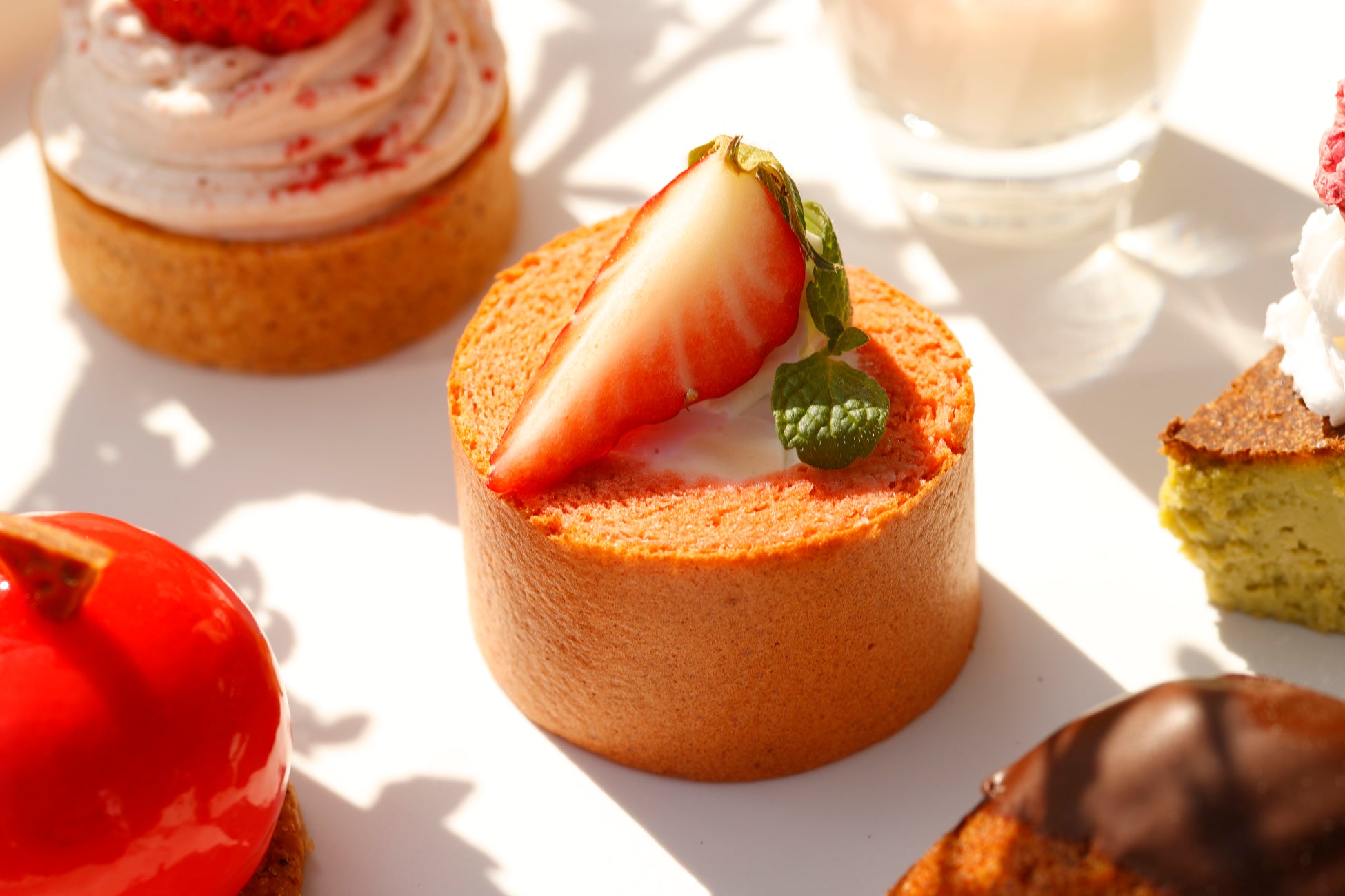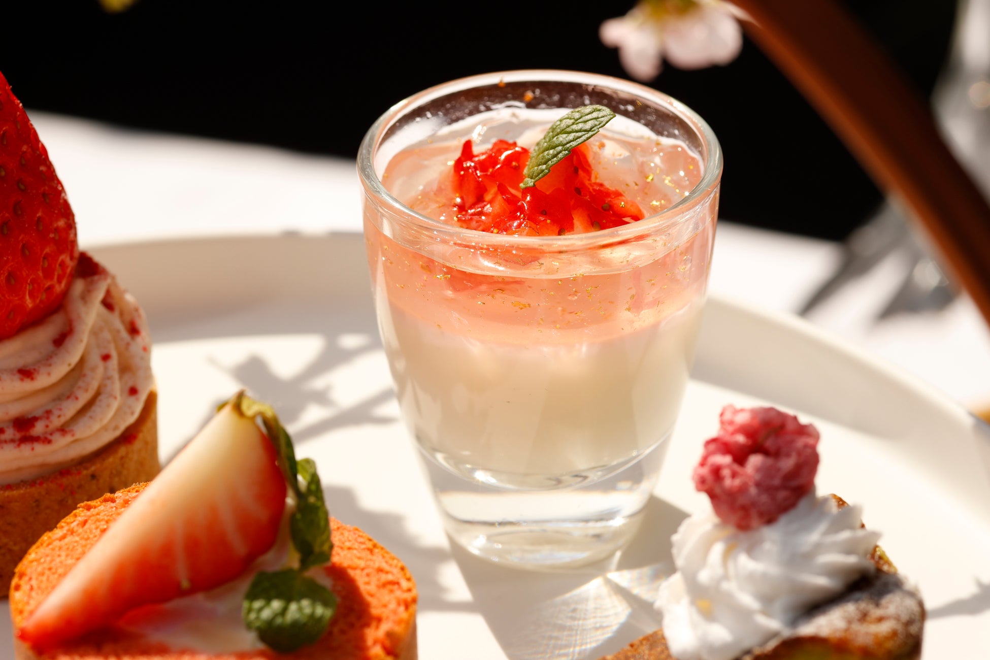なめらかで優しい甘さの杏仁風味のパンナコッタに、白ワインの桜ジュレを重ね、フレッシュないちごの酸味をアクセントに加えました。春の訪れを感じさせる、上品で華やかな一品です。