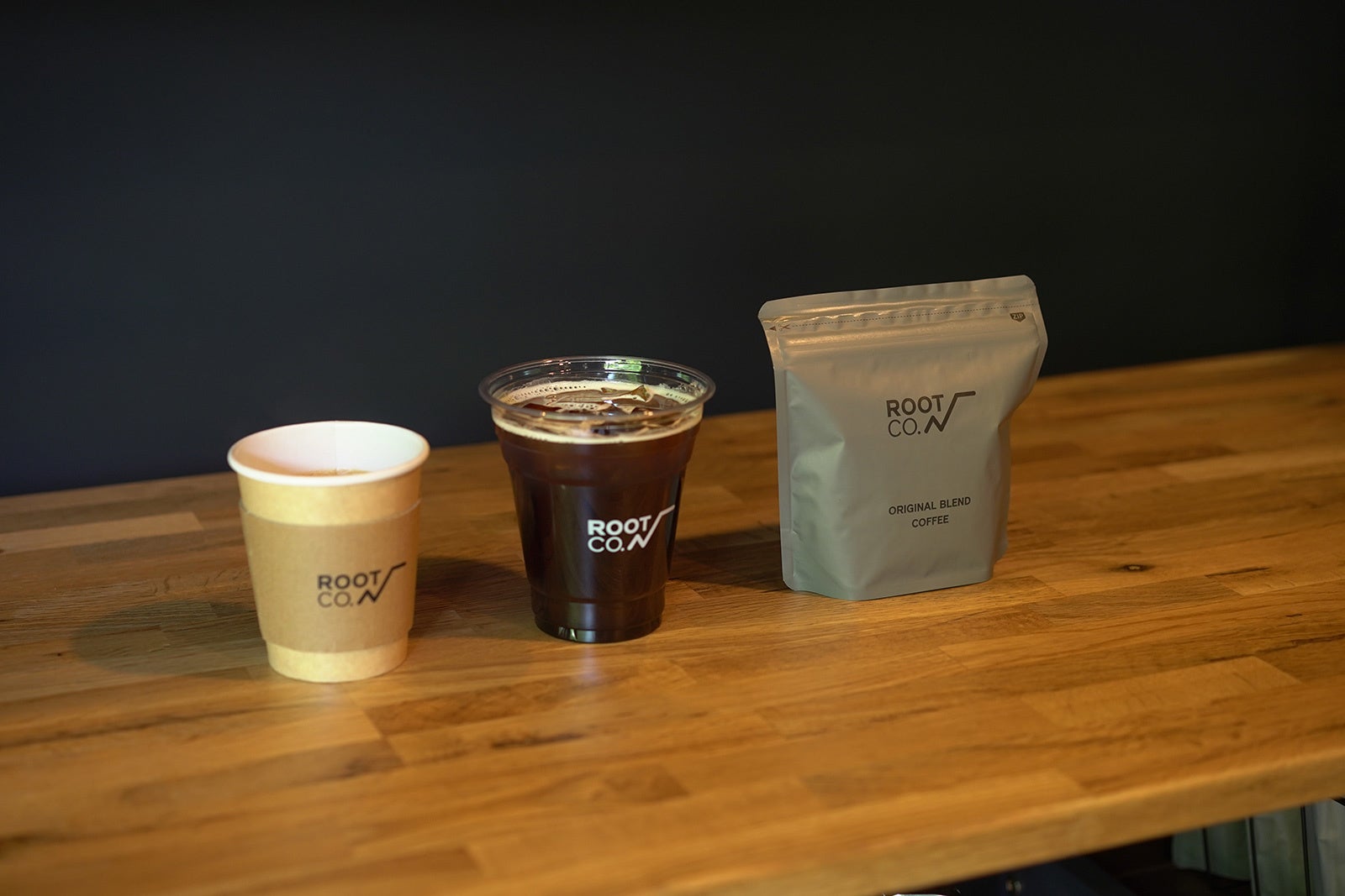 また、ご来店いただいたお客様にくつろいでいただけるカフェスペースもご用意いたしました。ROOT CO.オリジナルブレンドのコーヒーや、店舗で作るホットドッグ等もお召し上がりいただけます。