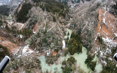 輪島市を流れる牛尾川(鈴屋川の支流)では、土砂災害による河口閉塞が数か所発生したため、道路も寸断され、人が近づくことが困難な状況でした。輪島市からJUIDAに、ドローンによる二次災害予防のための巡回点検要請があり、JUIDA指揮の元、ブルーイノベーションが開発したBEPポートからドローンが自動で離発着し、牛尾川の上流往復約3kmを飛行。土砂ダムの状況を上空から定期的に監視を実施しました。