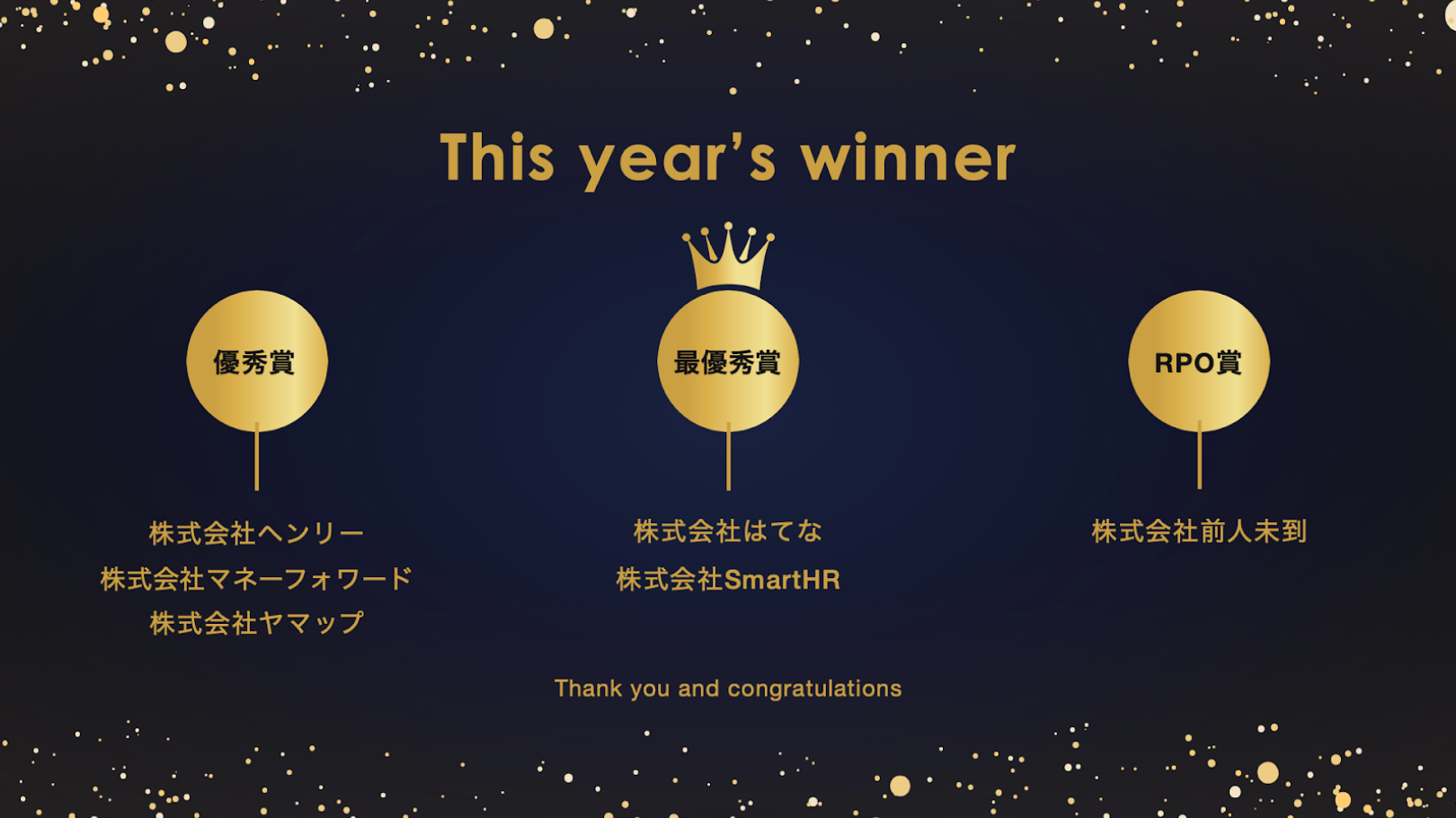 ※RPO賞とは、RPO(Recruitment Process Outsourcing)として採用代行事業を行う企業の中から、優れた成果や運用を行った企業を表彰する賞です。