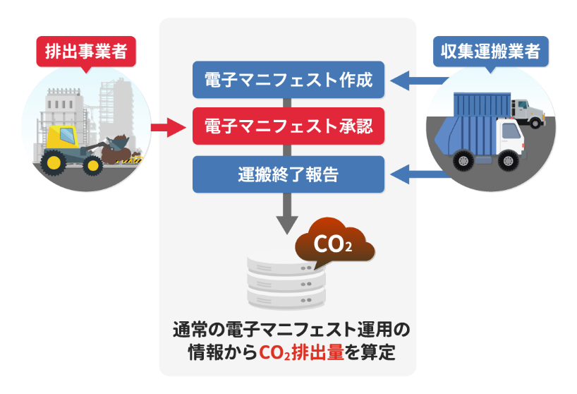 電子マニフェストサービス「e-reverse.com」で作成したマニフェスト情報から、産業廃棄物の収集運搬時のCO₂排出量を自動算定するサービスです。