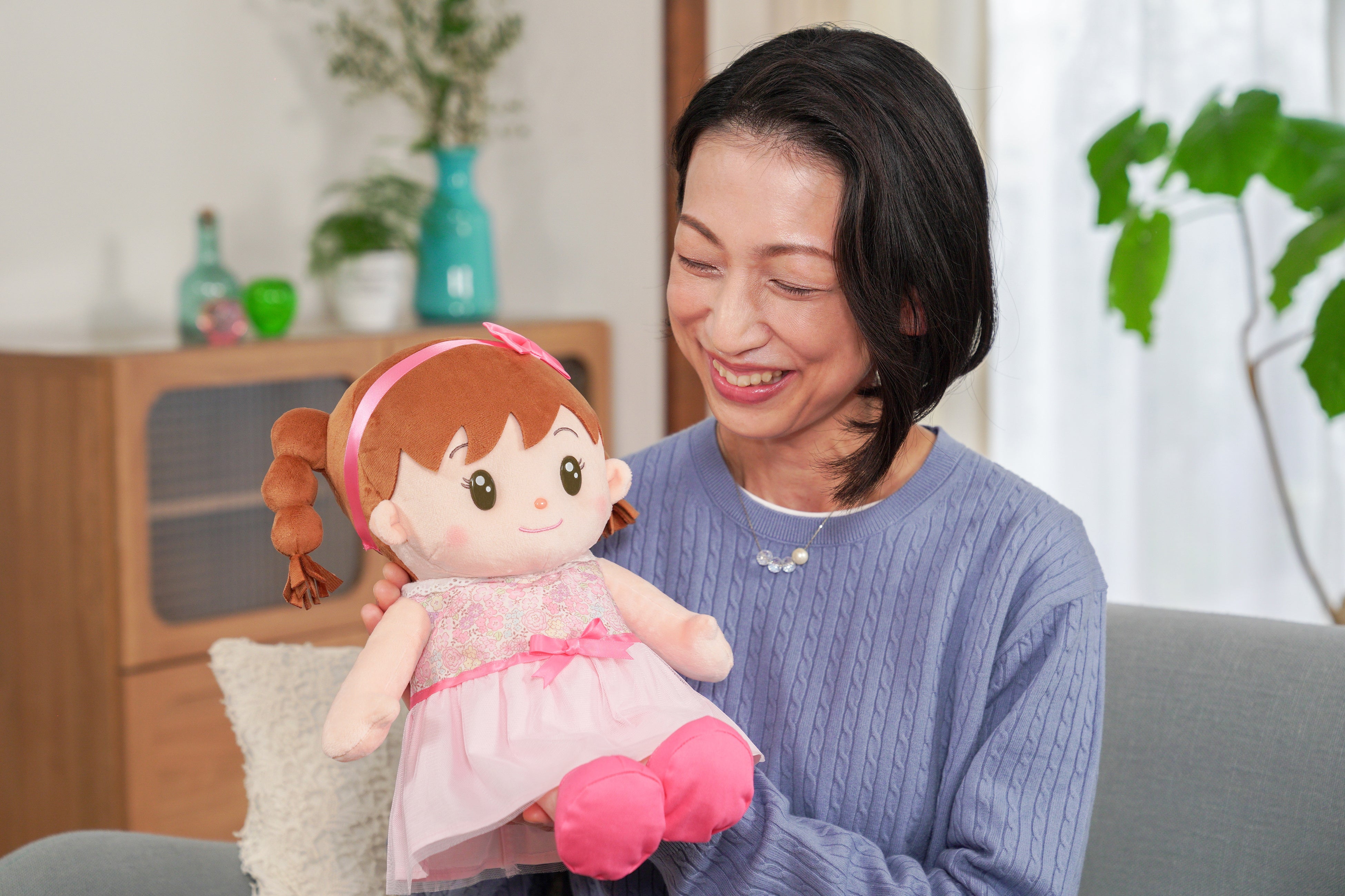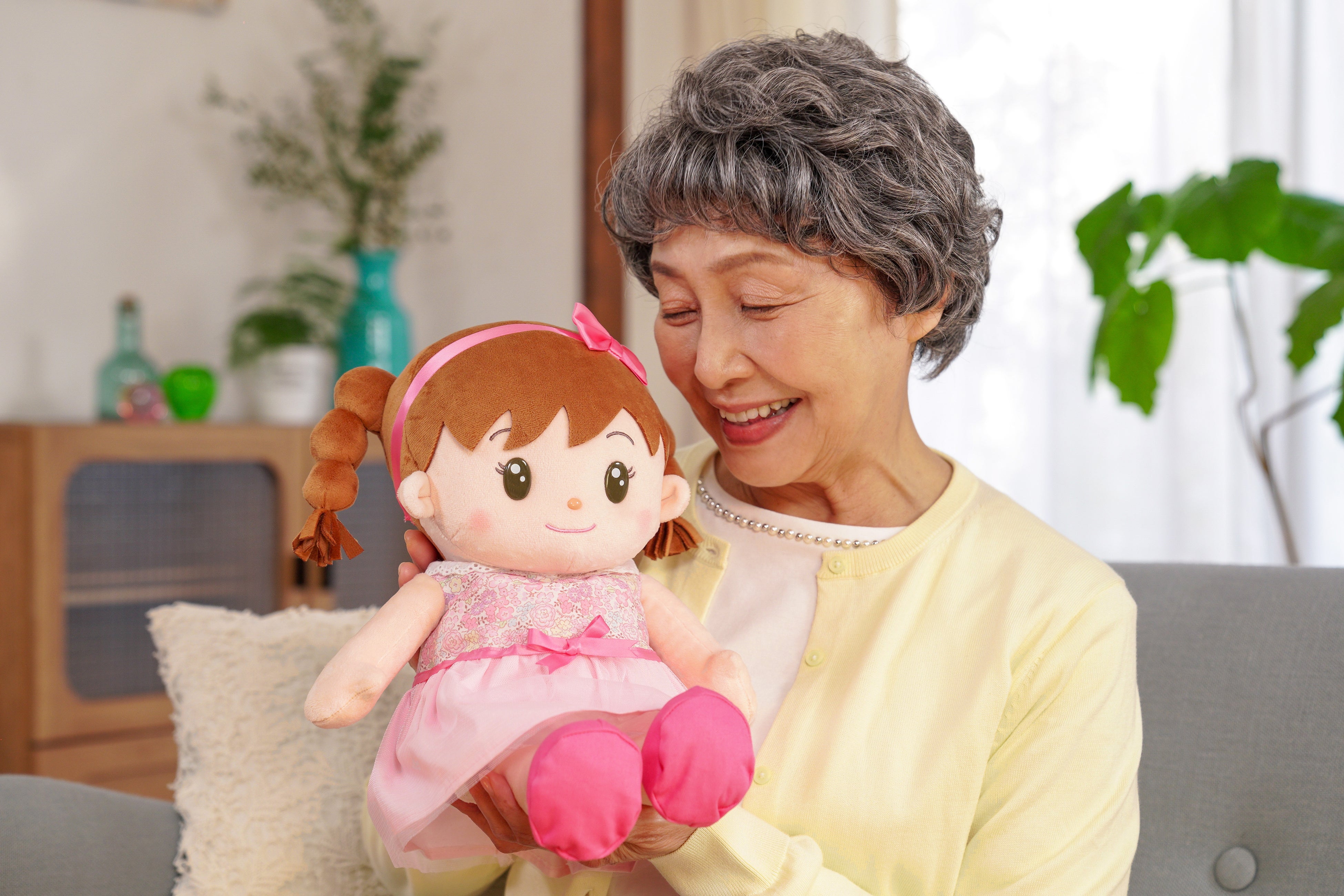 当社が開発・販売する⾳声認識⼈形シリーズは、2004年の販売開始以来、シニア層を中⼼に累計およそ26万体を販売する⼈気シリーズ。TVバラエティ番組にも複数回取り上げられている「おしゃべりみーちゃん」(2016年発売)をはじめ、シリーズこだわりの「本物のこどもの声」のあどけなさ、こどもらしい話し⽅が⾼く評価されているロングセラー商品です。