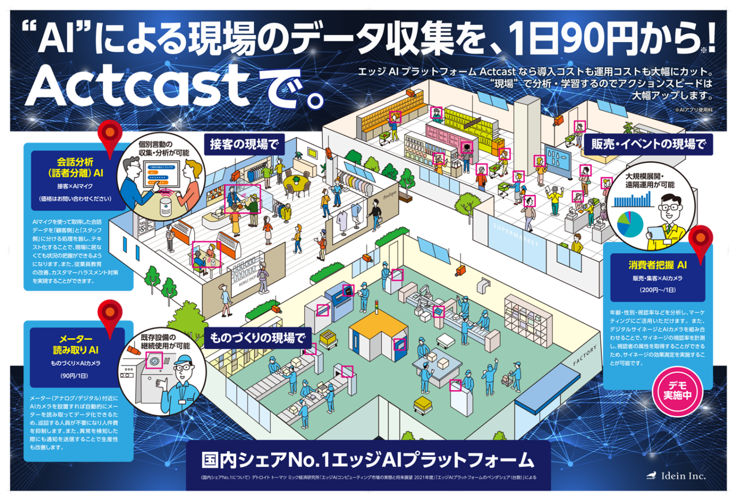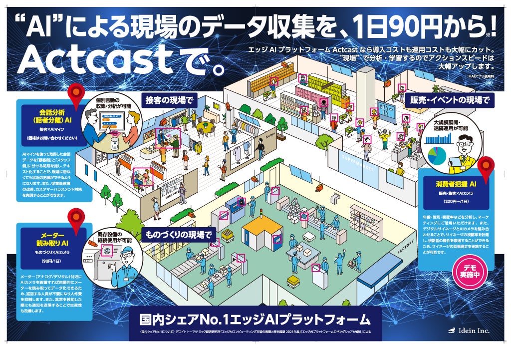 本展示会では、店舗や工場など様々な現場のデータをリアルタイムに解析できる最新のAI機能を体感いただけますのでぜひご来場ください。
