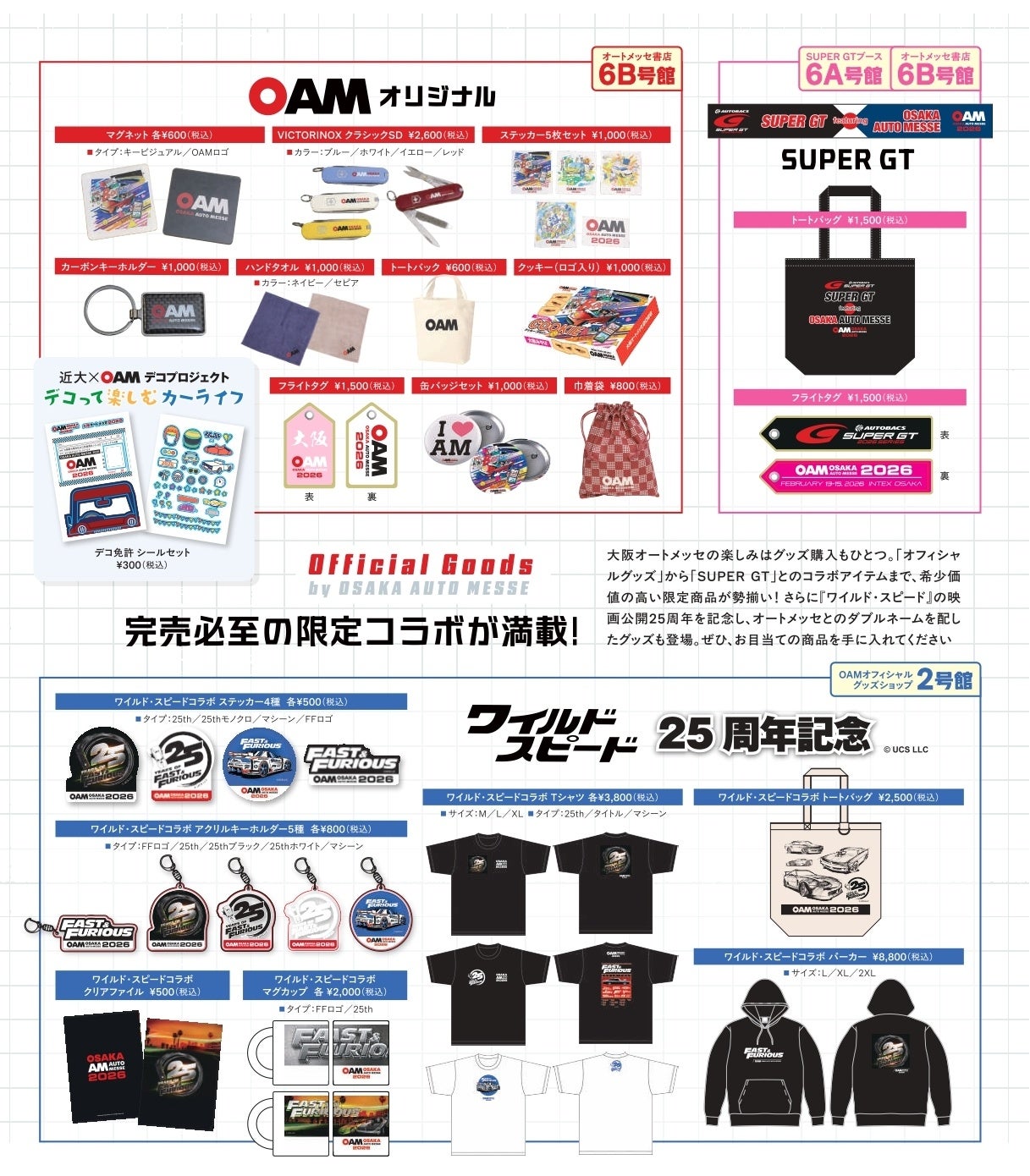 オートメッセ書店では公式グッズ販売や豪華景品が当たるガラポン抽選を実施。ここでしか買えないSUPER GT(6A号館)やワイルド・スピード(2号館)とのコラボグッズも必見です。お見逃しなく!
