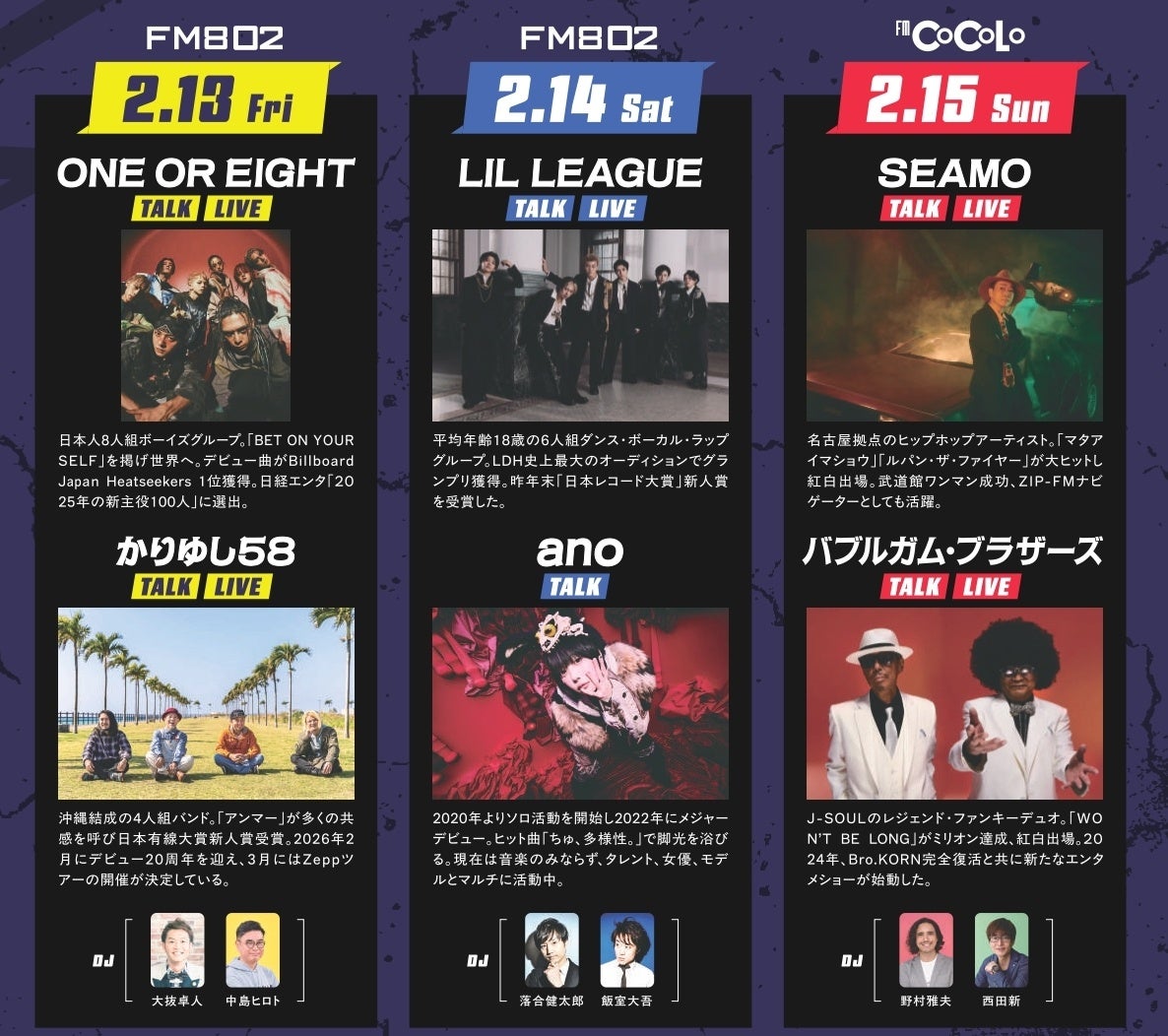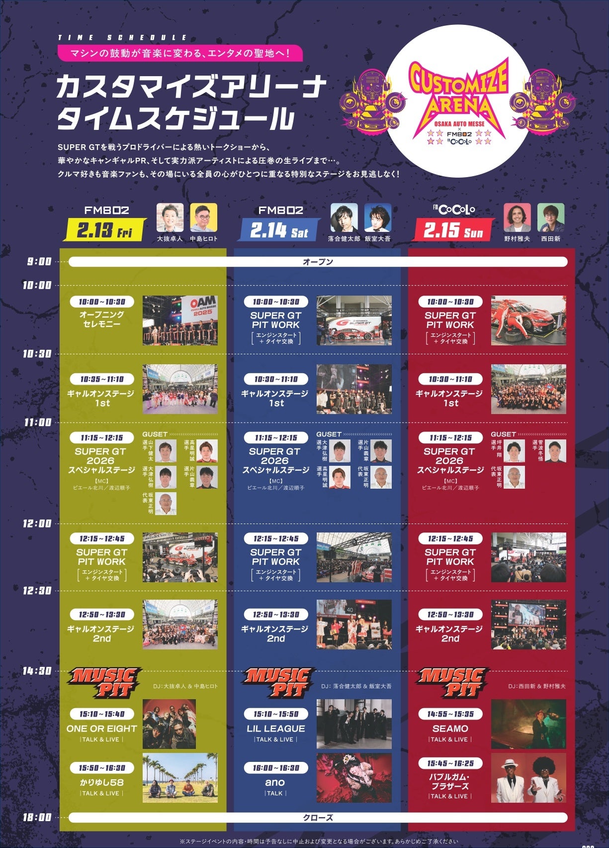 カスタマイズアリーナでは、会場限定のスペシャルラジオショー「MUSIC PIT」を開催。FM802/FM COCOLOの人気DJが登場し、豪華ゲストを迎えてトーク&ライブをお届け。会場との一体感と熱気を体感してください。