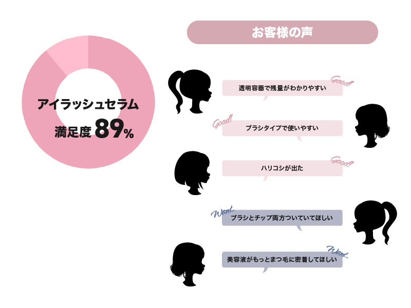 既存のお客様から支持の高い特長は継続し、改善希望点をアップデートすることで、“ 実感できるまつ毛美容液 ”を実現しました。