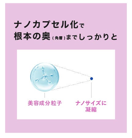 ヒト幹細胞培養液*⁸と6種のセラミド*⁹を浸透しやすいようにカプセルで包み込み小さくする“ナノカプセル化”を施すことで、キー成分がよりまつ毛と根本の奥まで浸透*¹⁰し、ダメージをしっかり補修、うるおいを与え保湿することで根本から美しいまつ毛へ導きます。