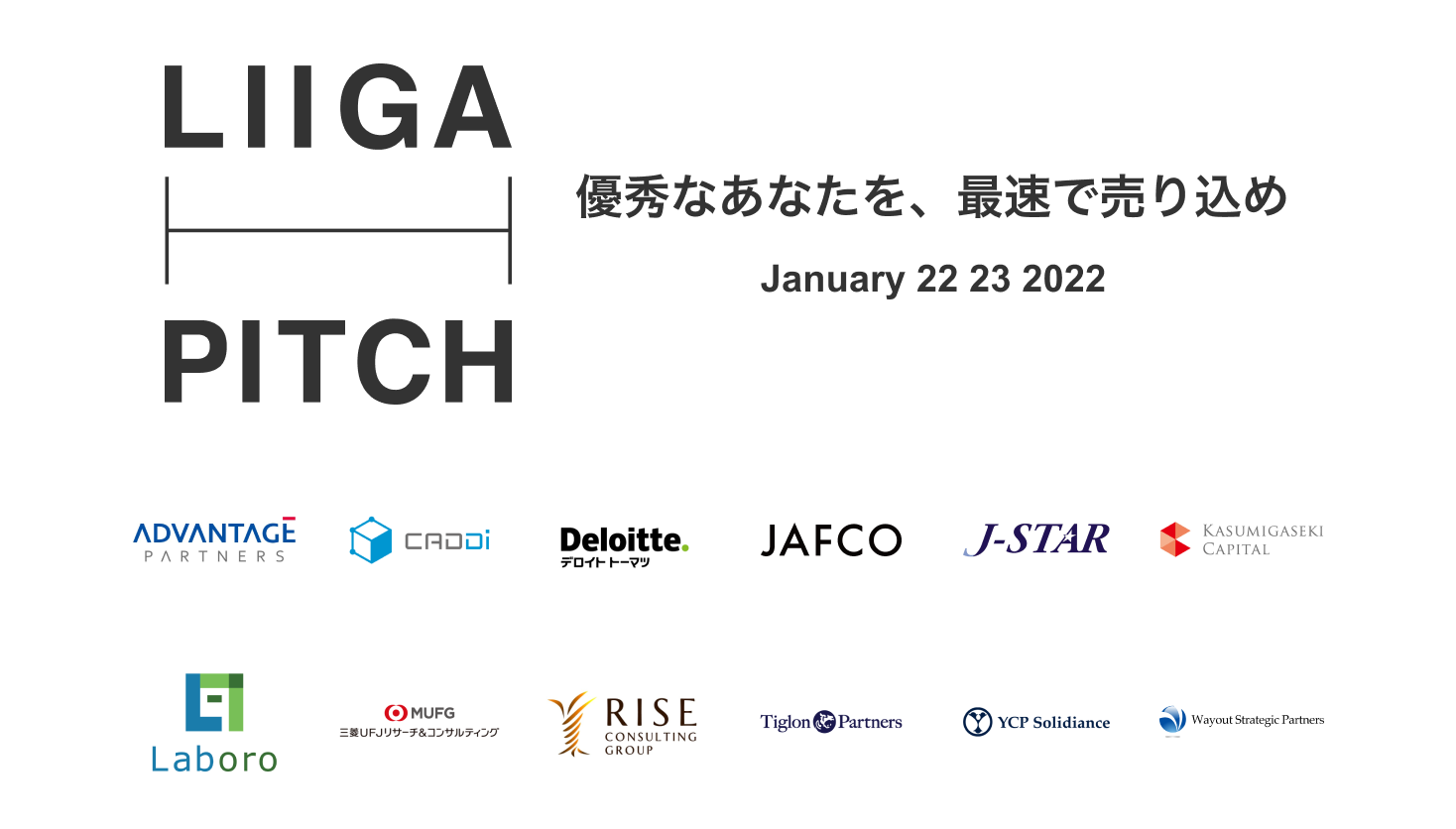 グローバルプロフェッショナルを目指す若手ハイクラス人材に向けたキャリア支援プラット フォーム「Liiga」(リーガ)を運営する株式会社ハウテレビジョン(東京都港区、代表取締役:音成洋介)は、2022年1月22日(土)〜1月23日(日)の2日間、オンラインイベント「Liiga PITCH」を開催いたします。