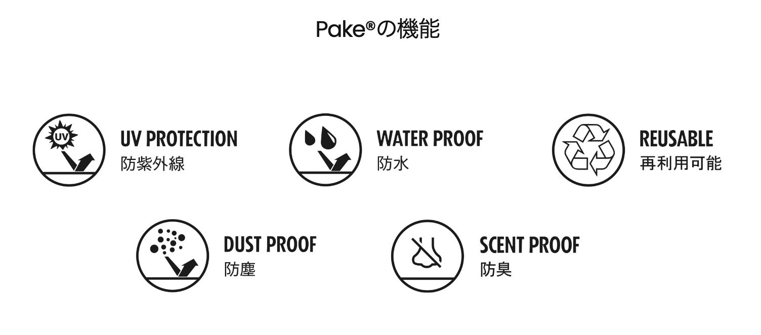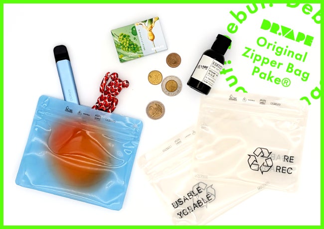 「Pake」は、高機能な日本製ジッパーバッグブランドです。UVカット、防塵のほかに防水・防臭機能があるため、DR.VAPEを持ち運ぶのにぴったり。繰り返し使える耐久性にも優れたサステイナブルなアイテムで、世界中のユーザーから支持されています。