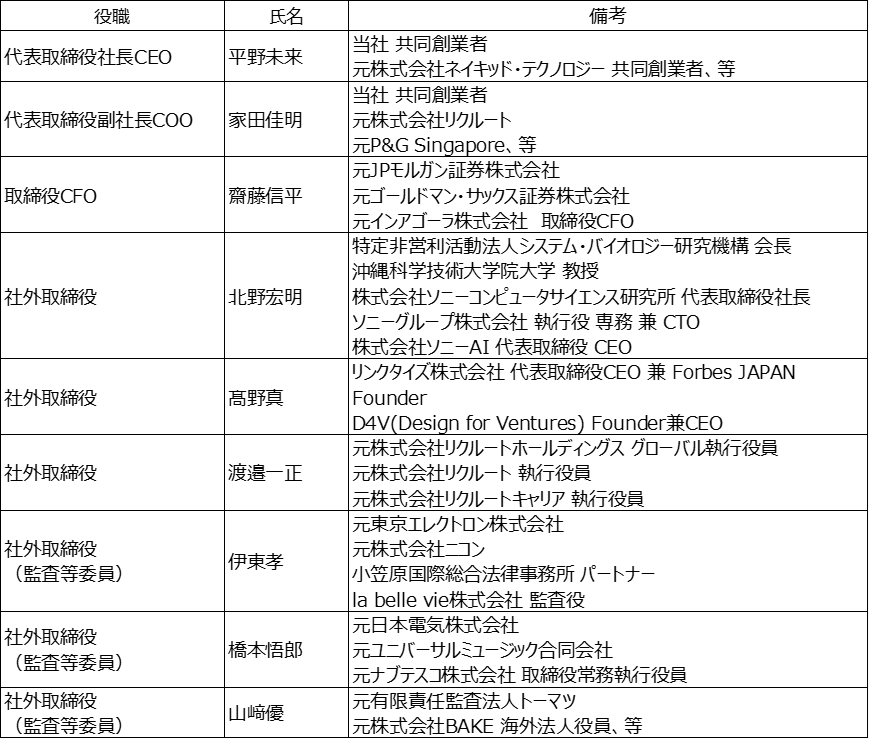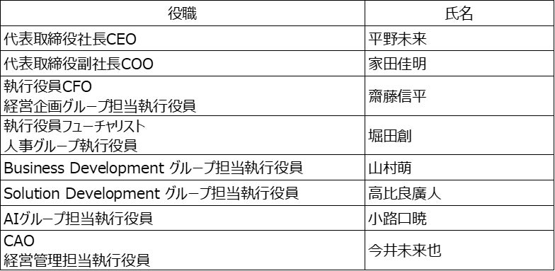 代表者:代表取締役社長CEO 平野未来
