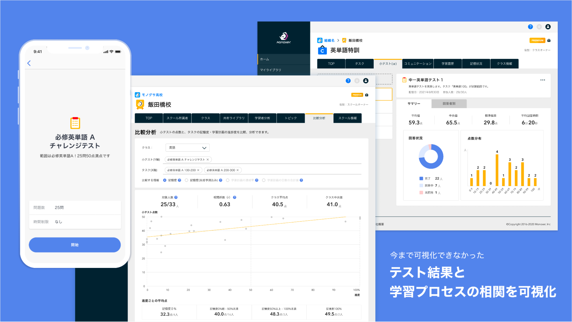 記憶定着のための学習プラットフォーム「Monoxer(モノグサ)」にて、「小テスト比較分析機能」をリリース