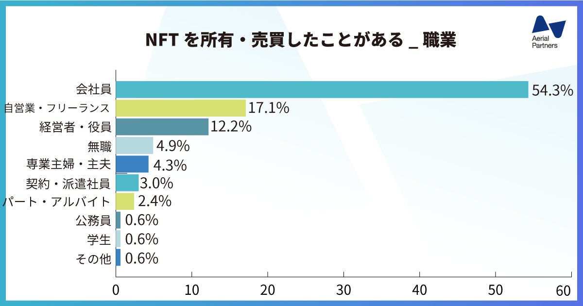 NFTはどんな人が集めてる?所有数や購入価格、年代からNFT投資の成功・失敗談までアンケートで徹底調査:https://www.aerial-p.com/media/nft-awareness-survey.html
