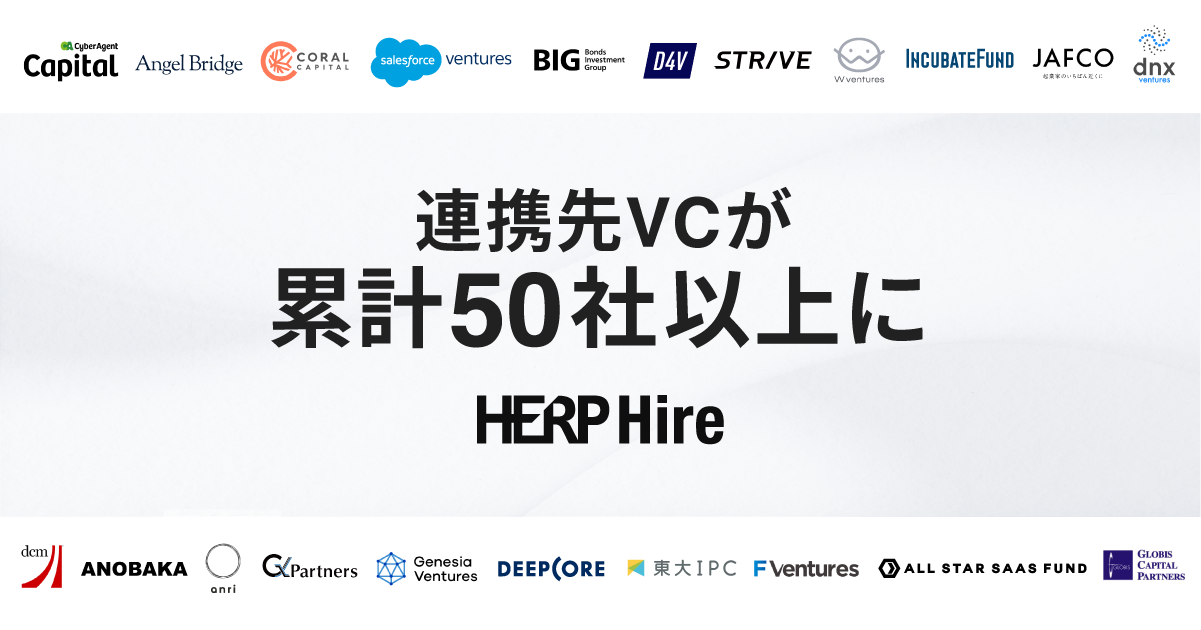 「HERP Hire VC連携プラン」の連携先VCが累計50社以上に