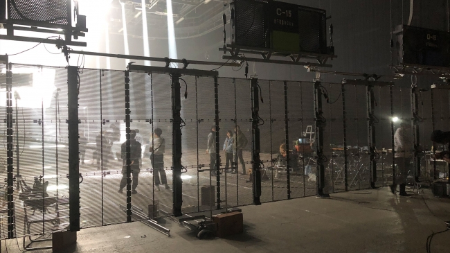 3.9ミリピッチ、横8メートル×縦2.5メートルの透過型LEDビジョンである「ウィンドウビジョン」を、映像演出の背景に使用しています。