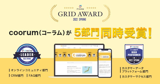 【5部門受賞】カスタマーサクセスプラットフォーム「coorum」が「ITreview Grid Award 2022 Spring」にて5部門で受賞