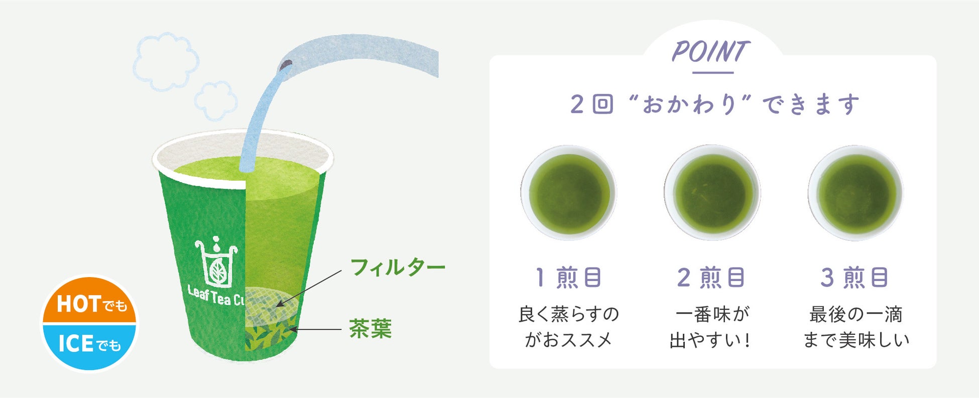 急須で入れるお茶のように、3煎目までたっぷり味わえます。